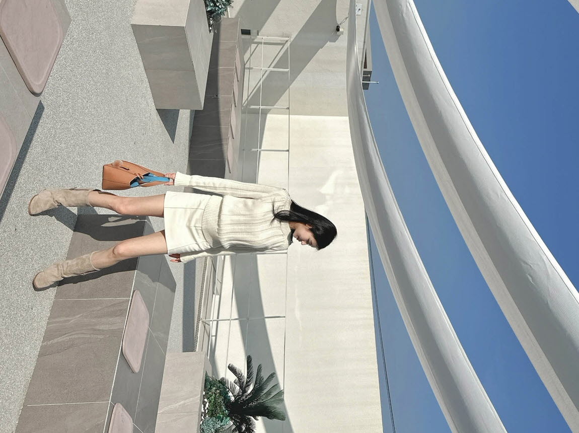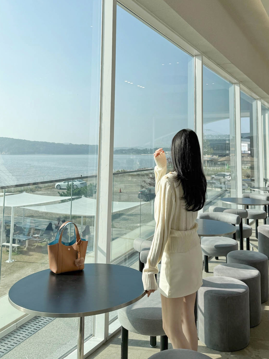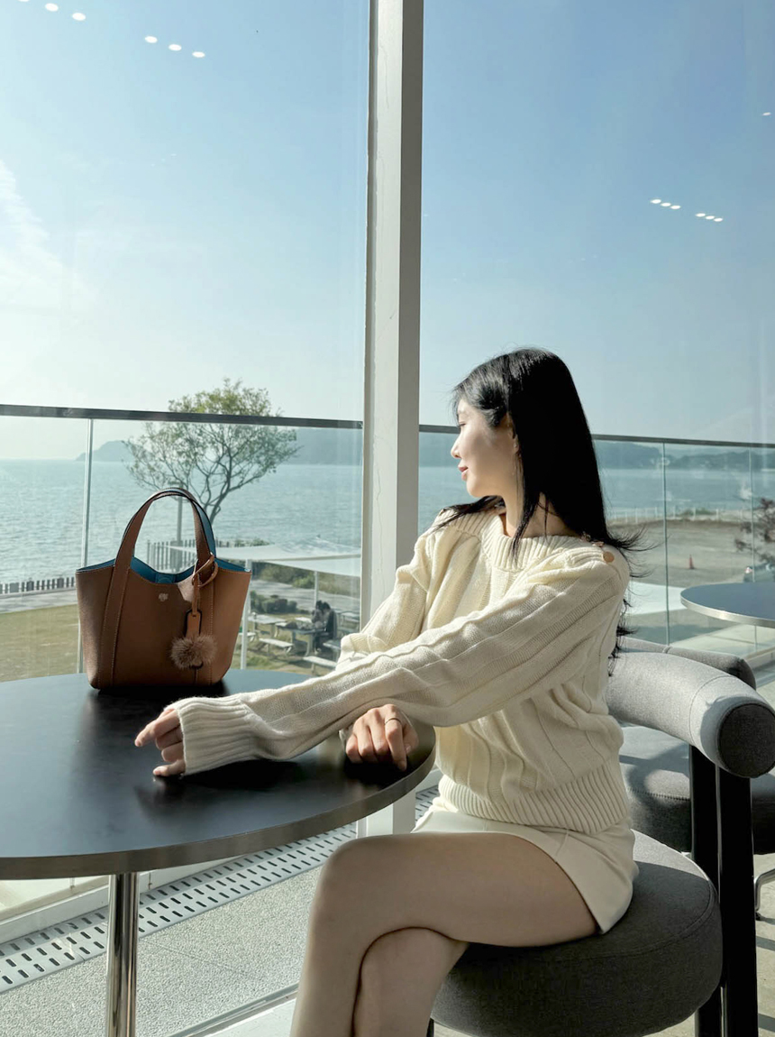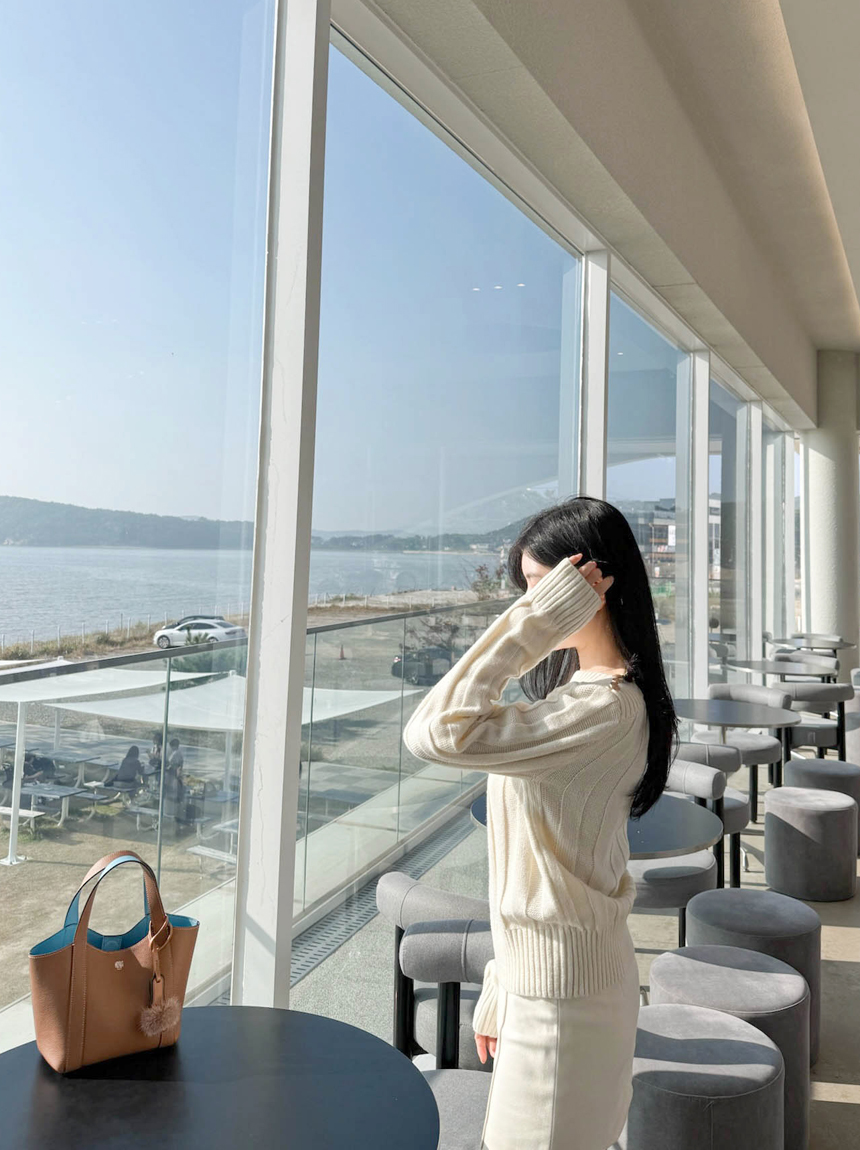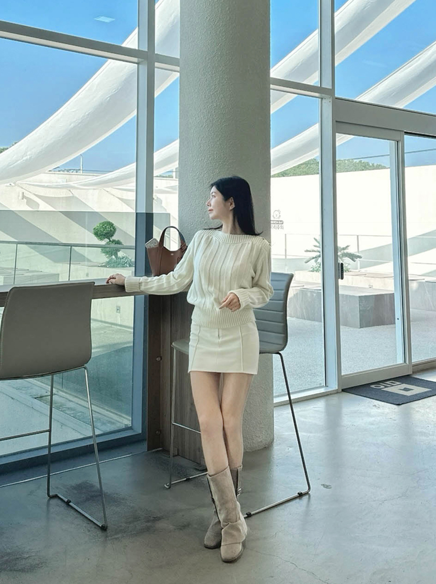 보트넥 라인으로 목선이 여리해 보이며
