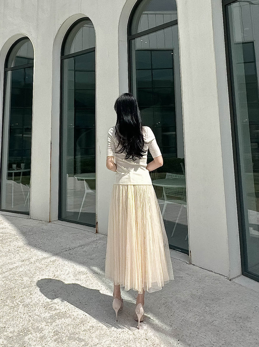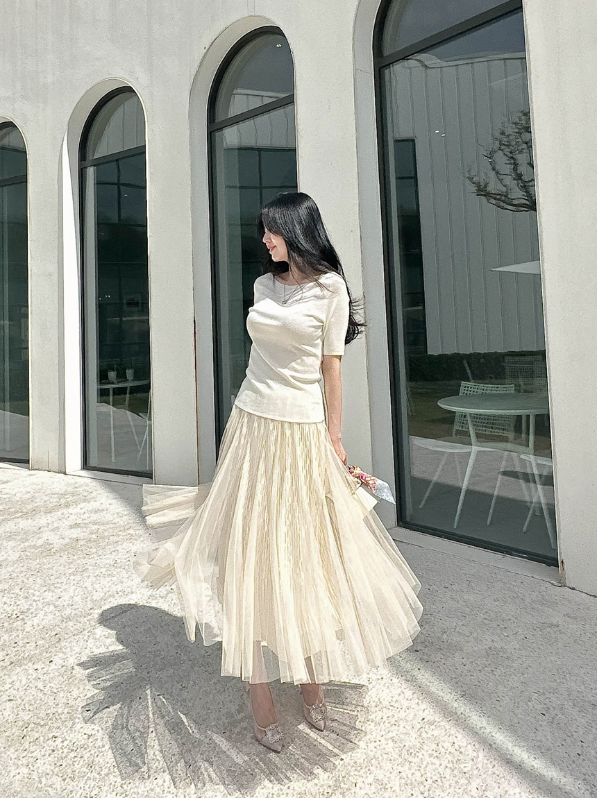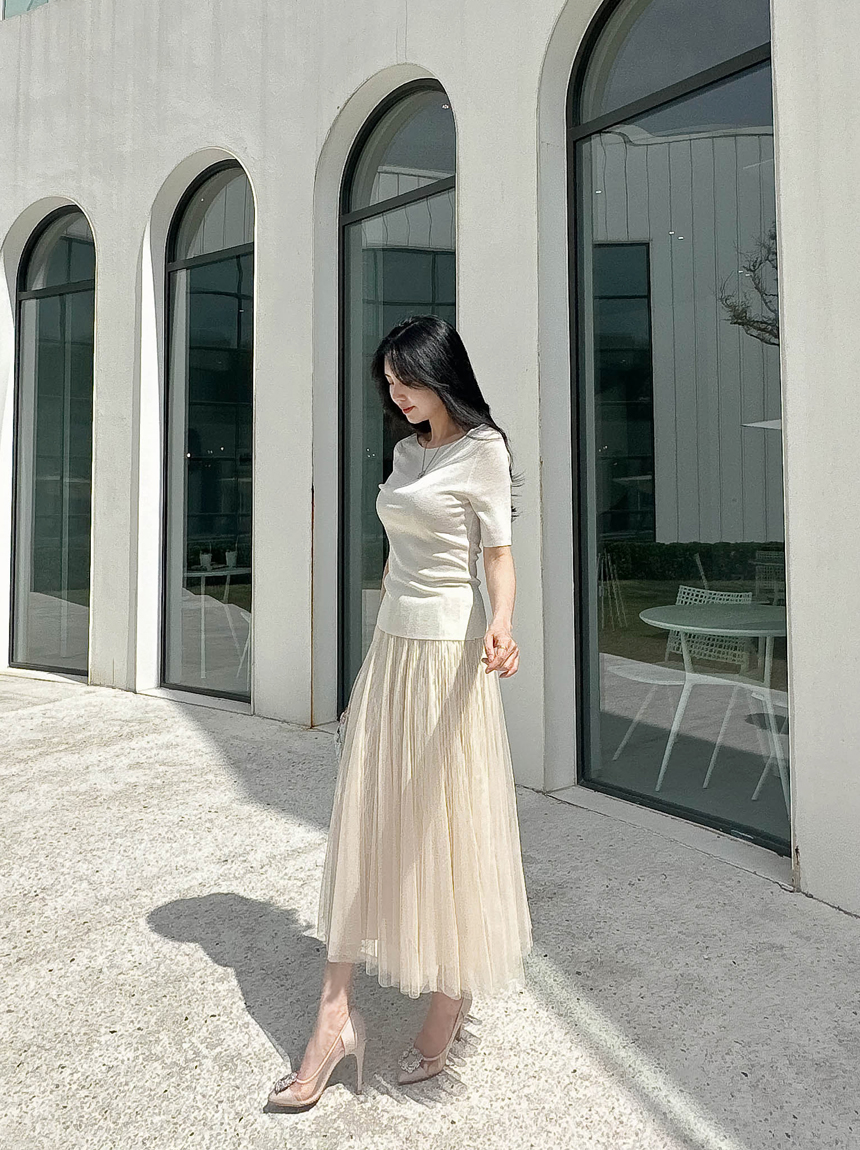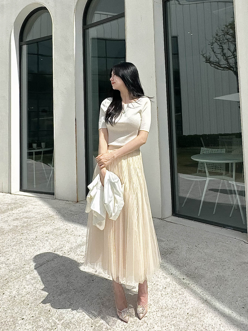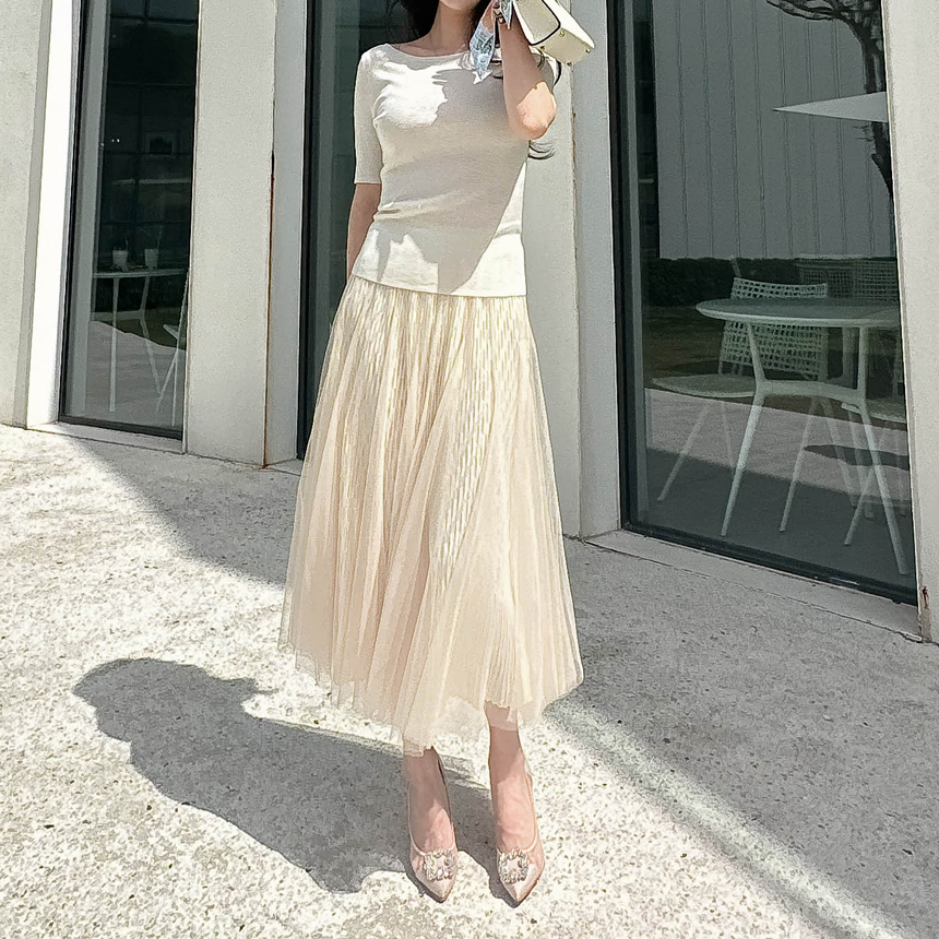 밴딩 부분도 새틴처럼 되어 있어 세련된 스커트에요