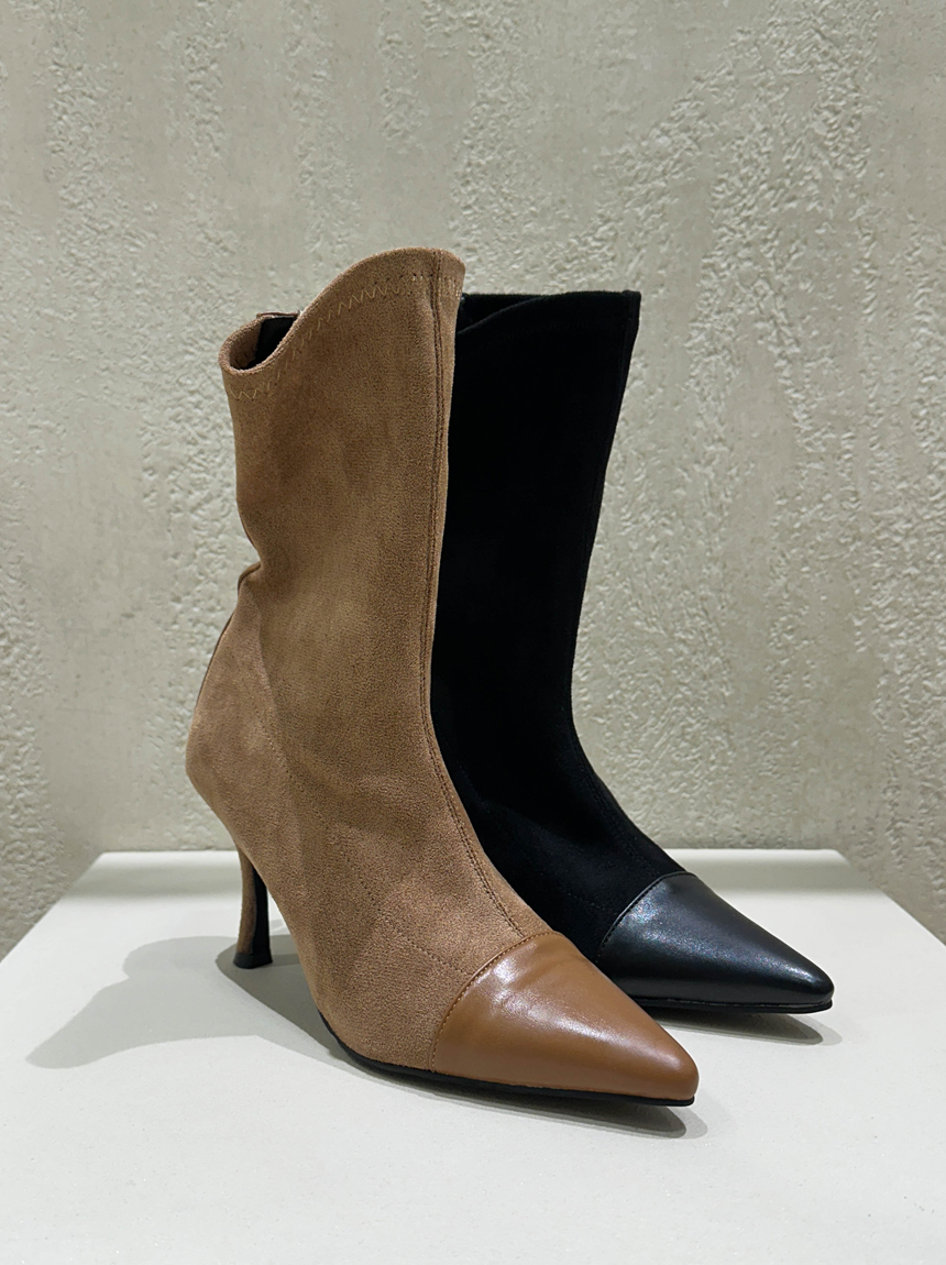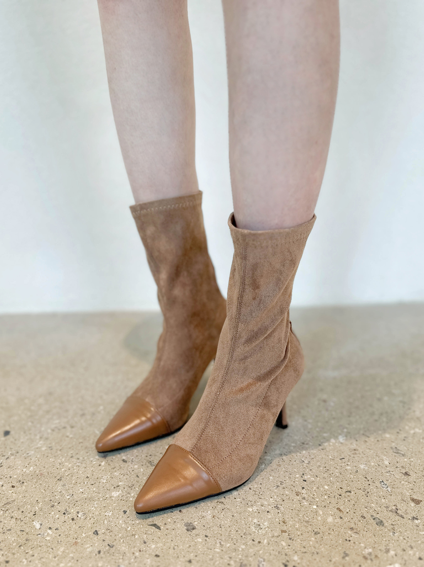 투톤 스웨이드 스판 앵클부츠
