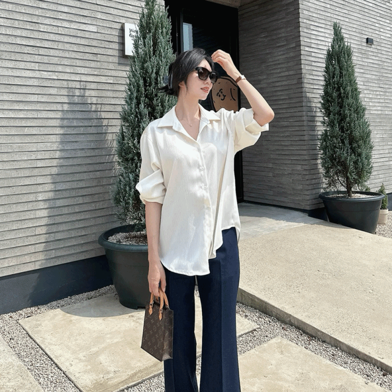 루즈핏 플리츠 주름 카라 셔츠블라우스 소개 해드려요 :)