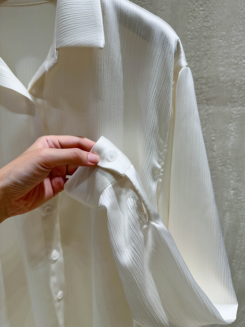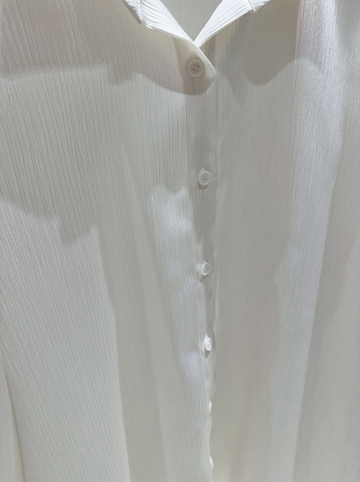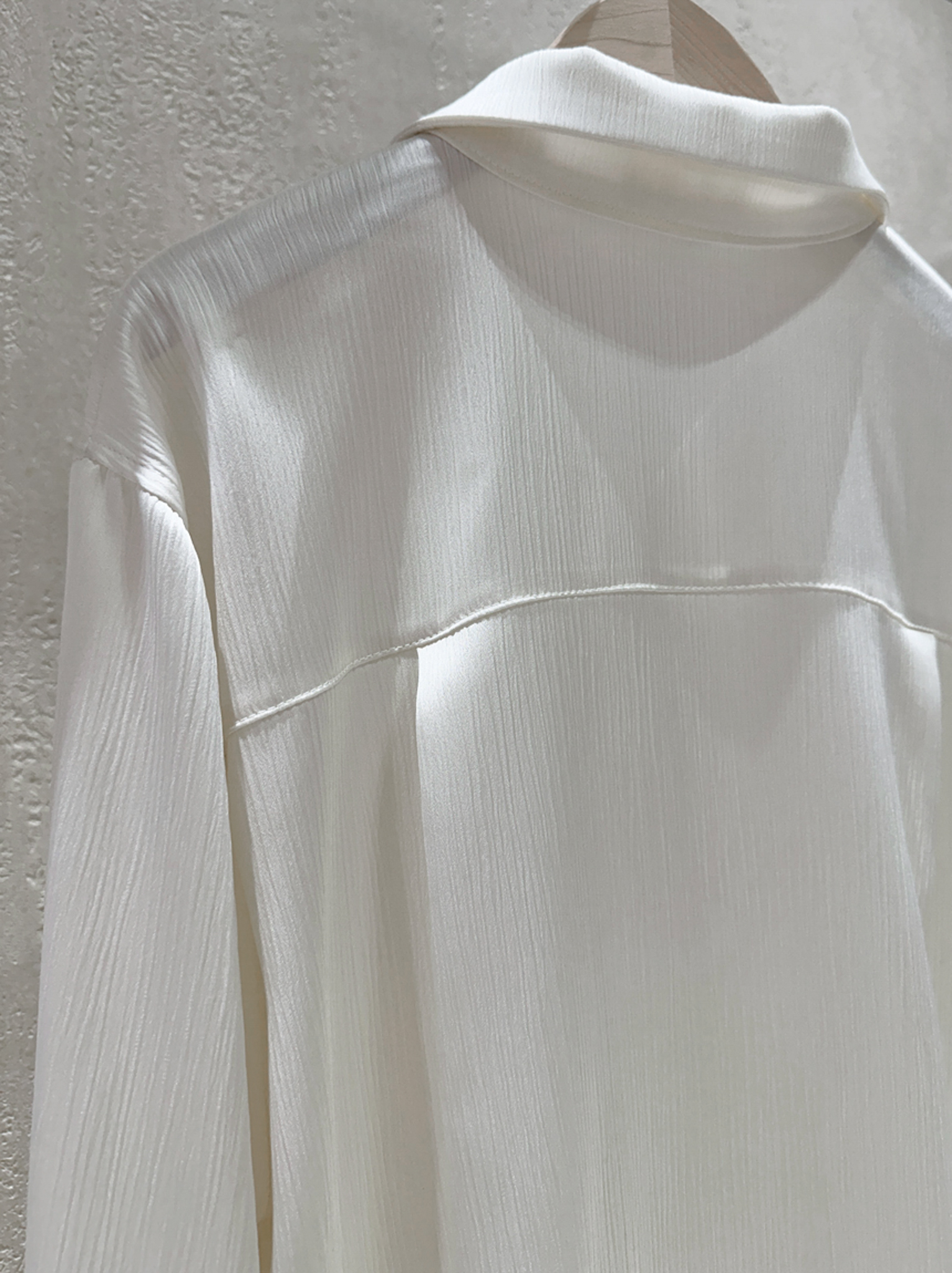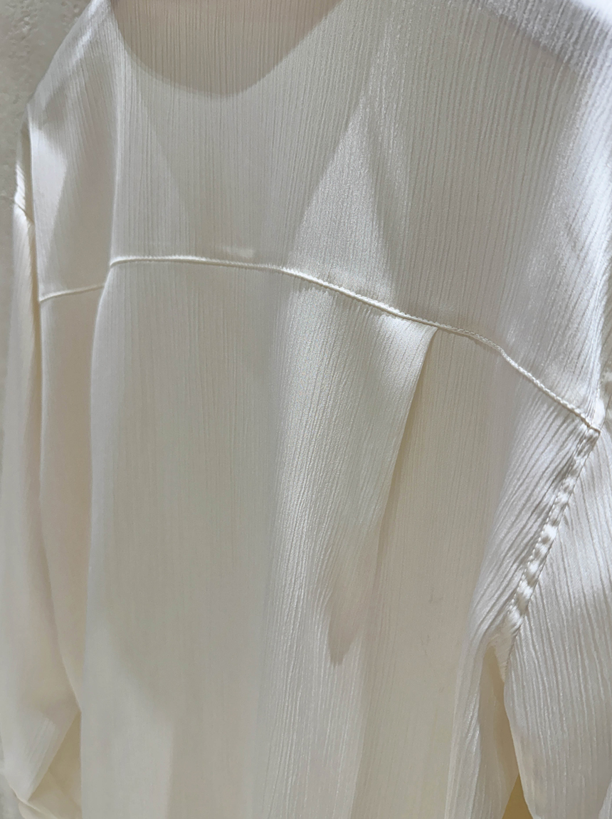 소재 특유의 내추럴한 플리츠 주름 텍스처가 돋보이며
