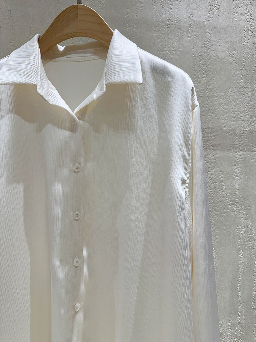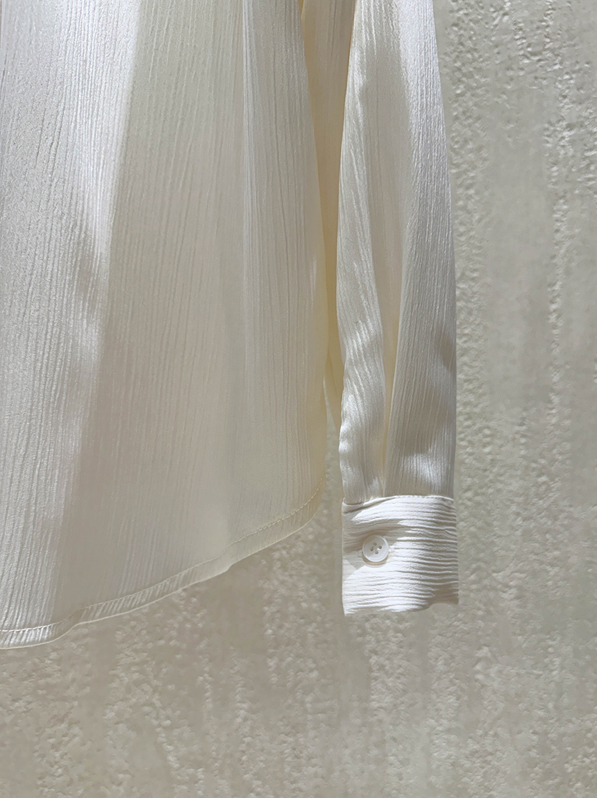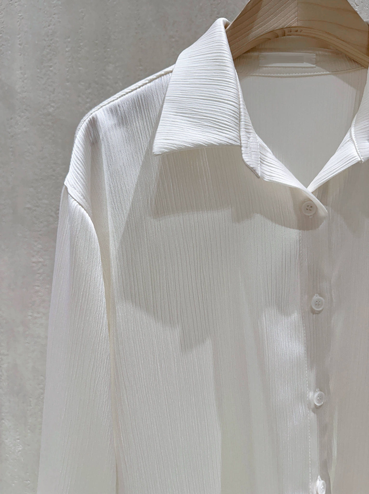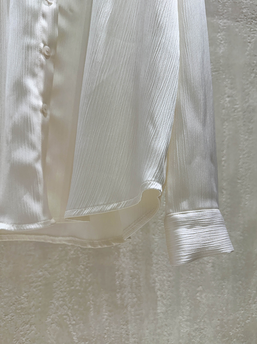 소재 특유의 내추럴한 플리츠 주름 텍스처가 돋보이며
