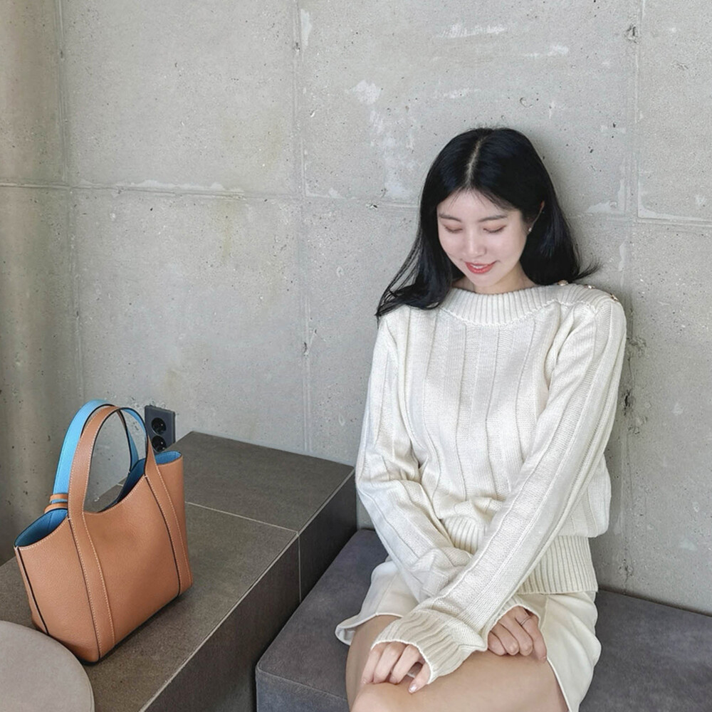 보트넥 라인으로 목선이 여리해 보이며