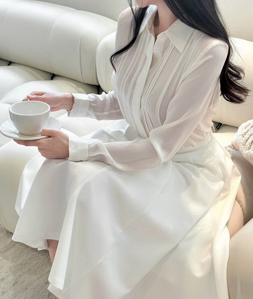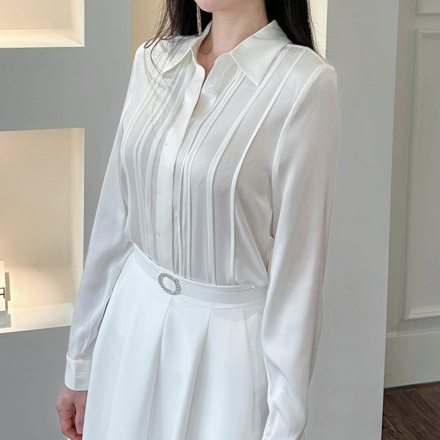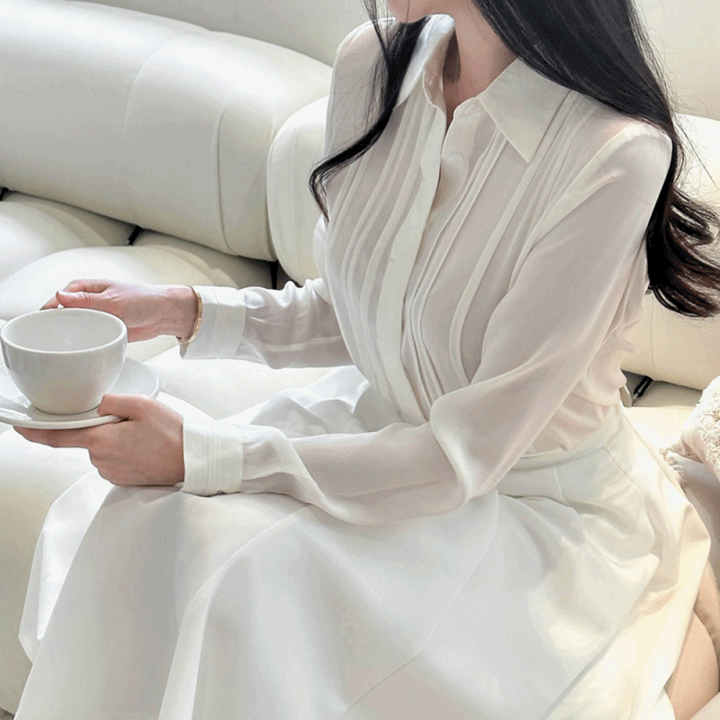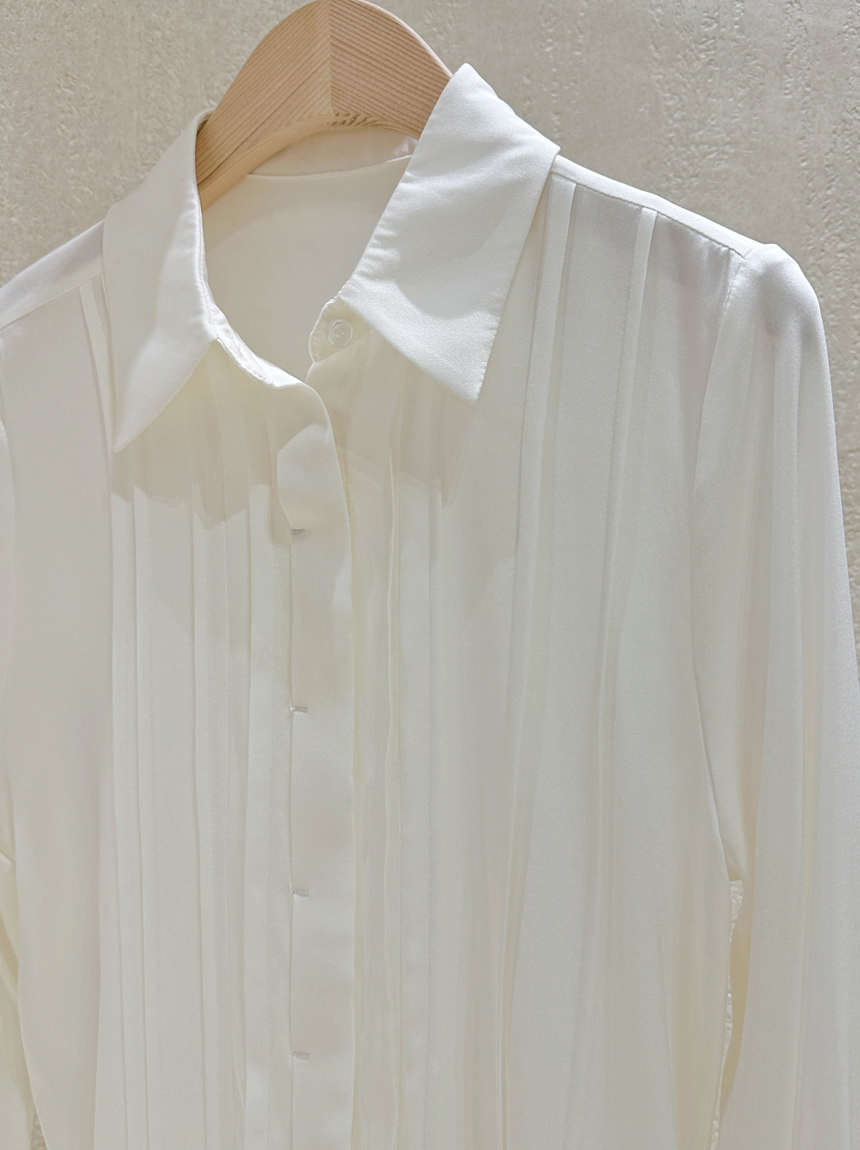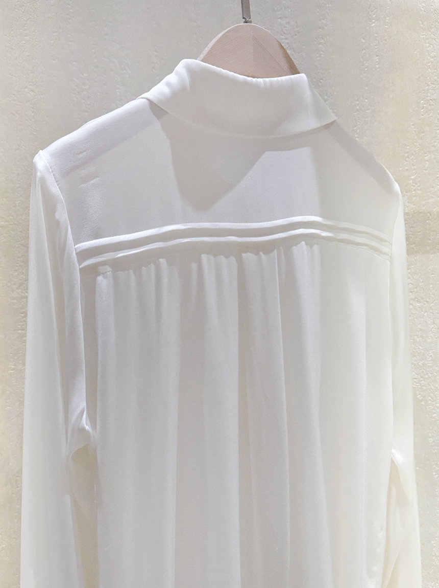 심플한 카라넥과 프론트 핀턱 디테일로