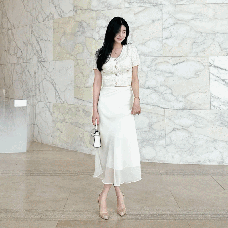 여리여리한 실루엣으로 어떤 상의와도 잘 어울렸어요.