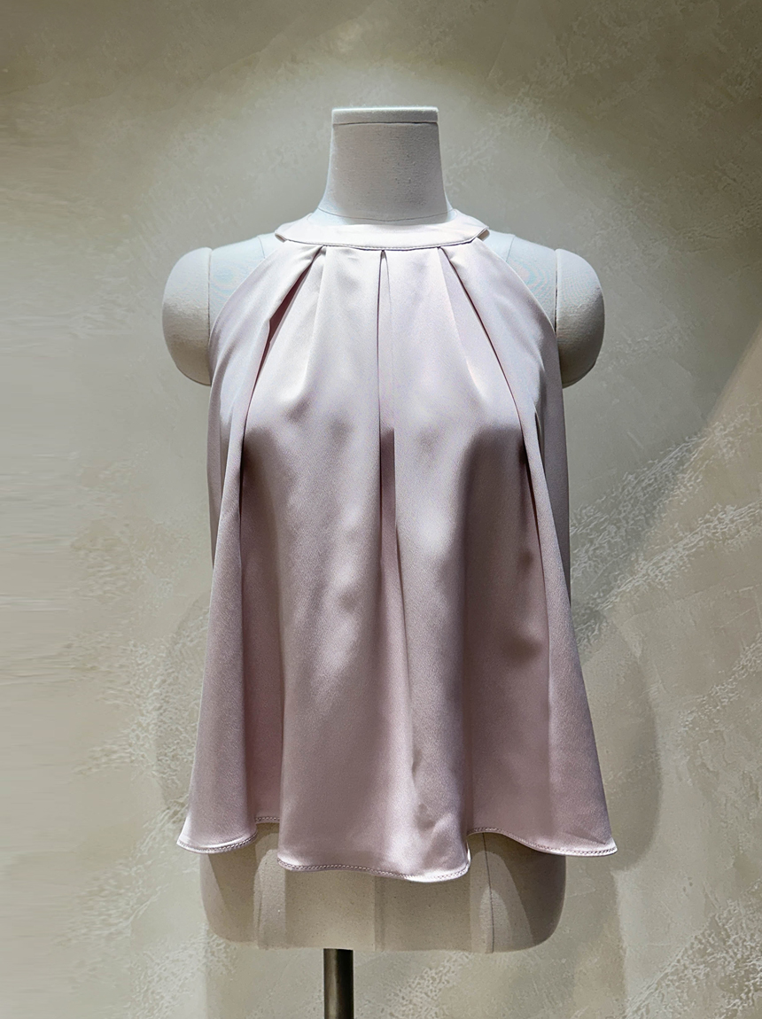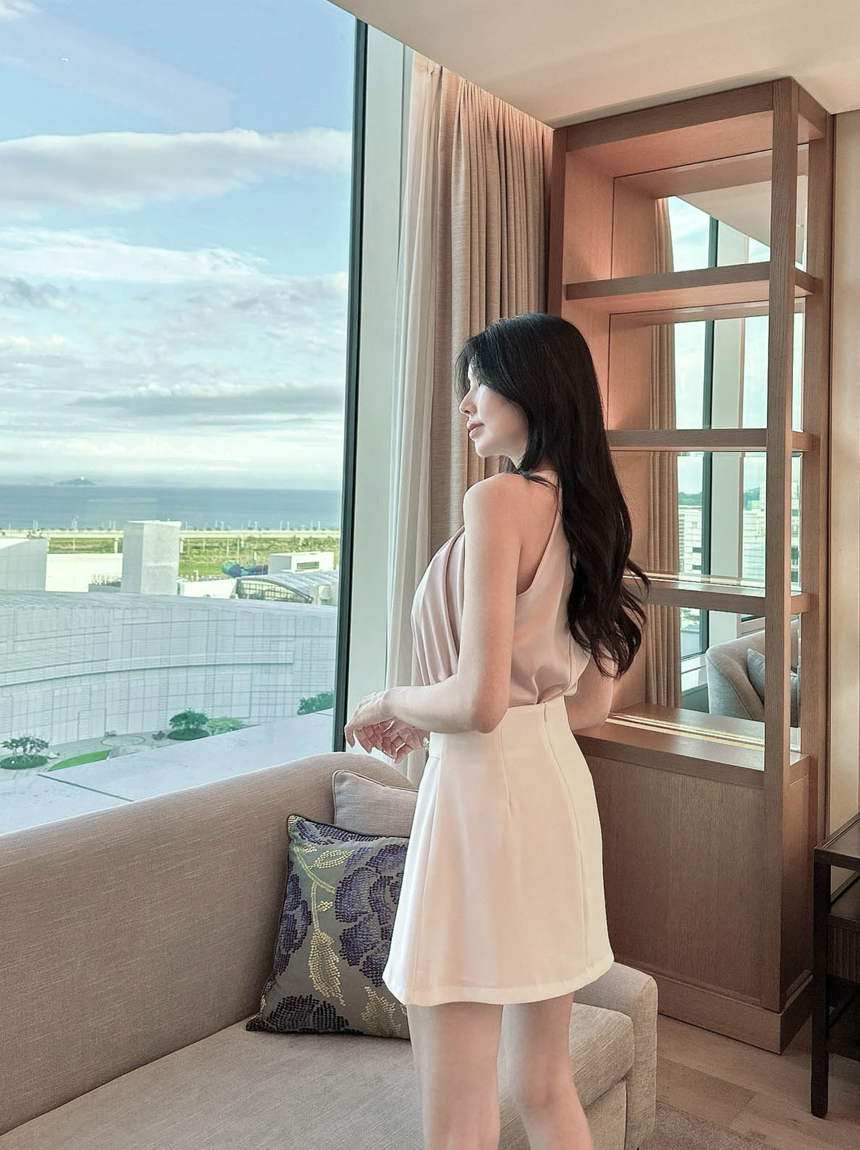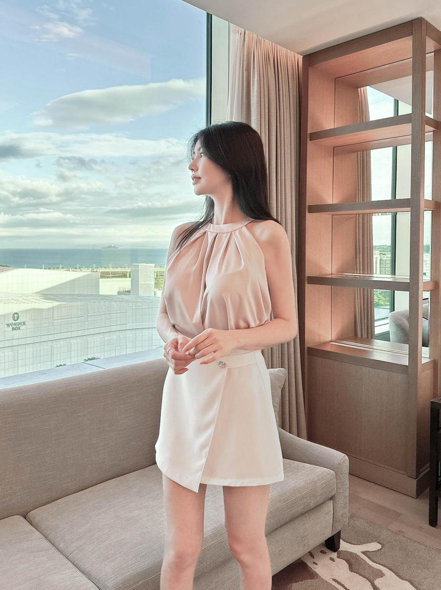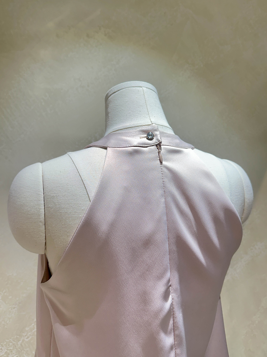 심플한 디자인에 목 뒤 단추로 포인트를 주고