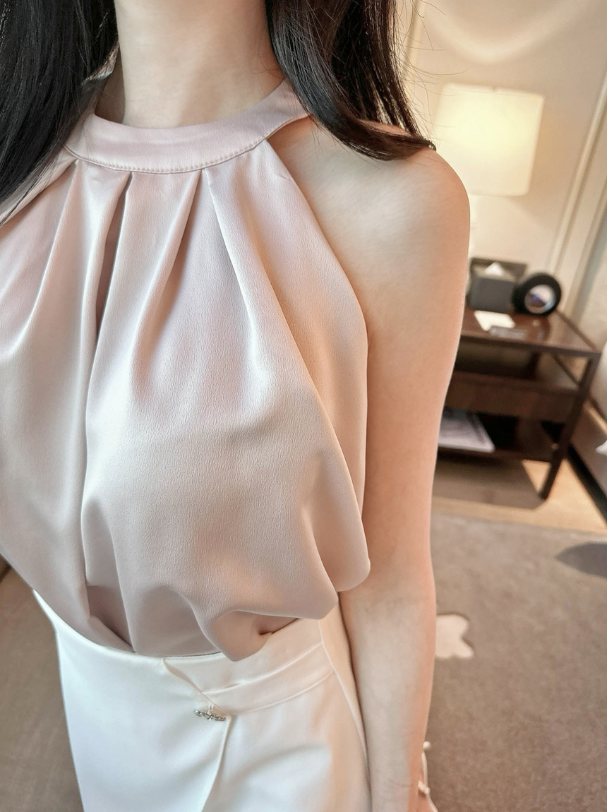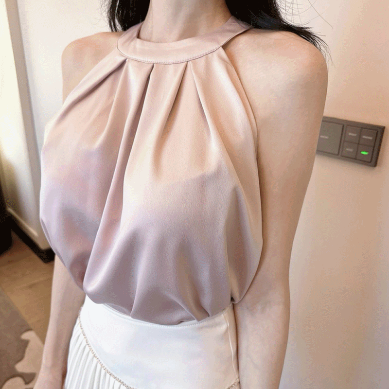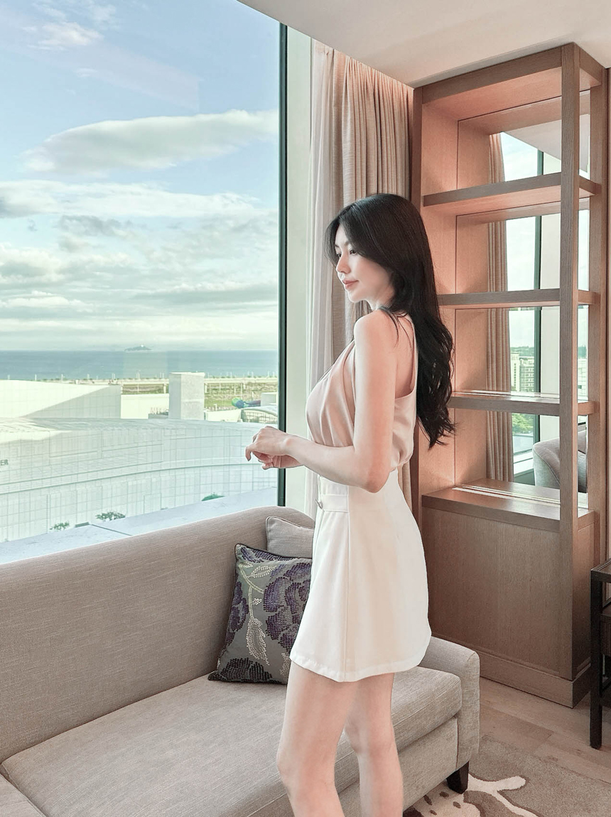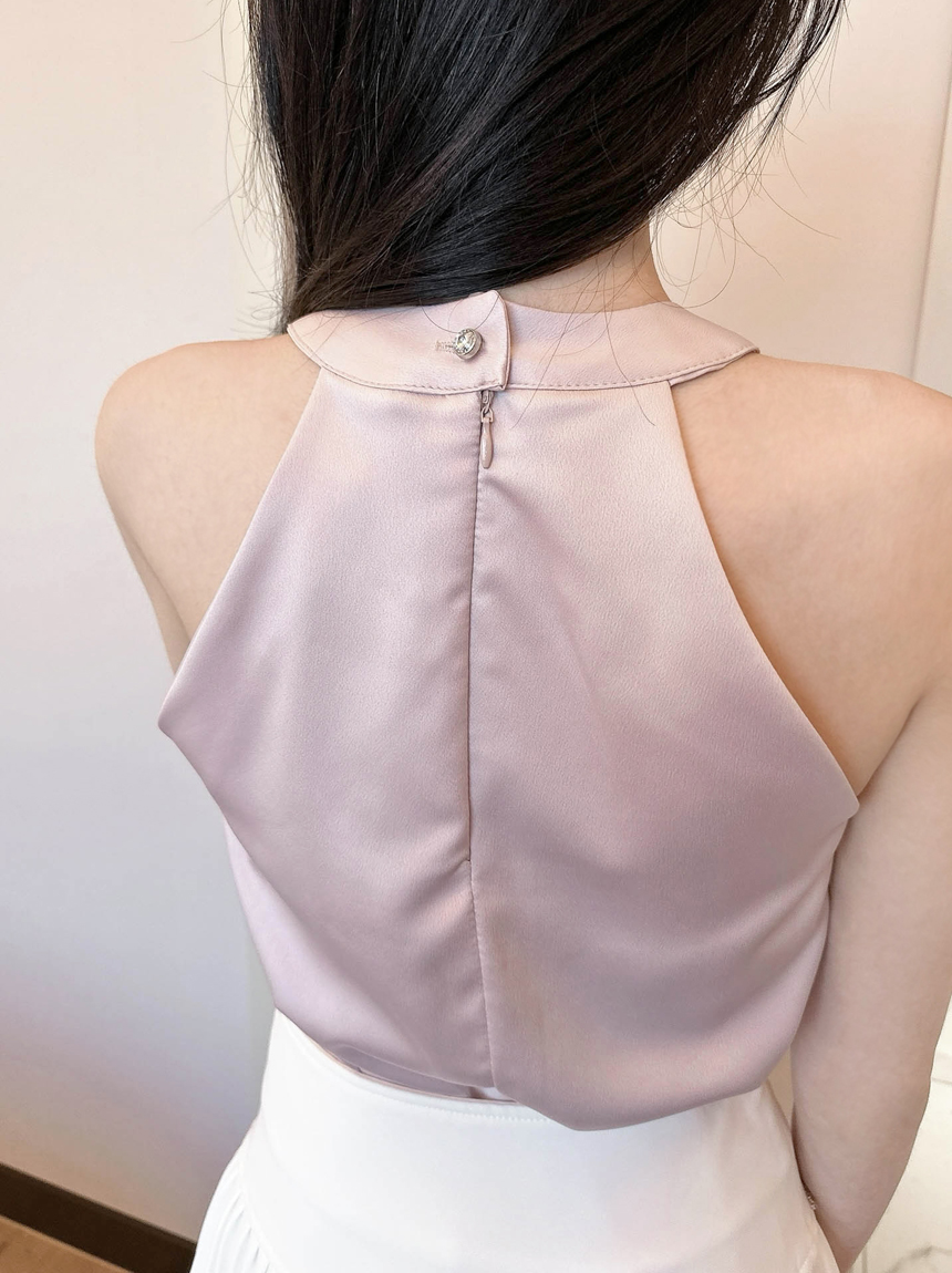 심플한 디자인에 목 뒤 단추로 포인트를 주고