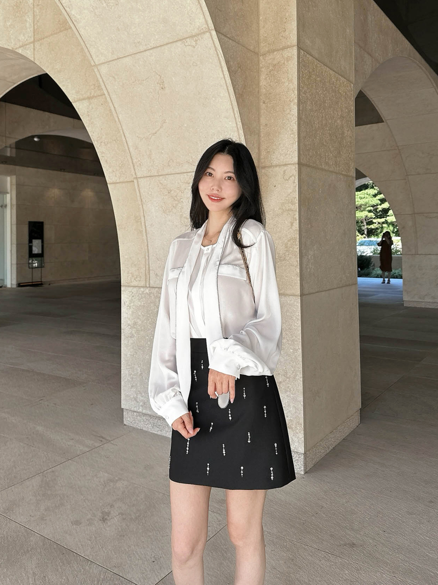 러블리한 느낌을 연출해 주는 블라우스예요-