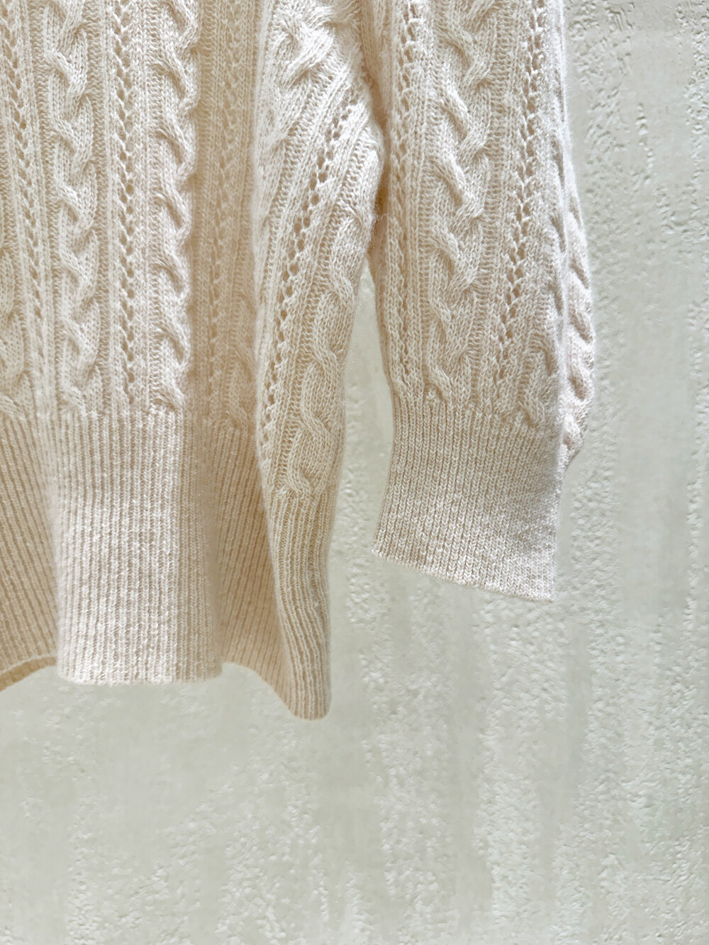 몸판 전체가 꽈배기 패턴으로 짜여