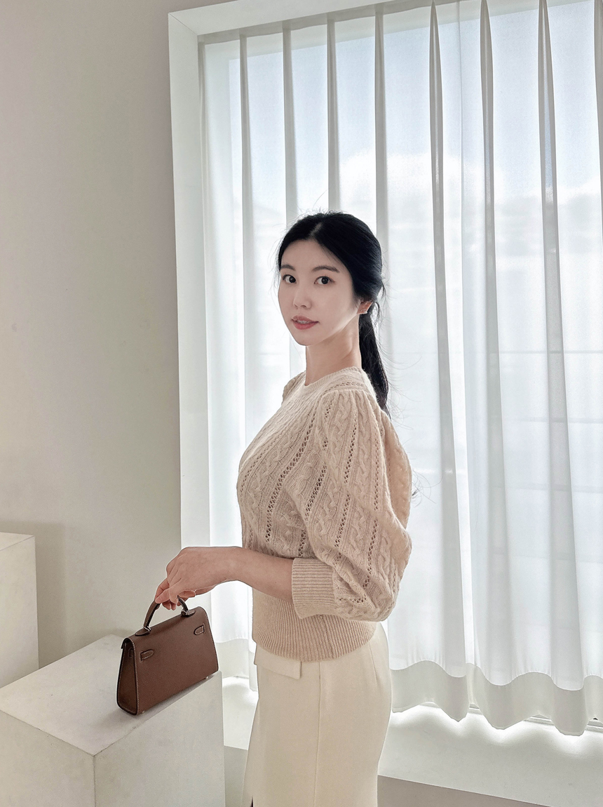 꽈배기 패턴이 은은해 여성스러운 무드가