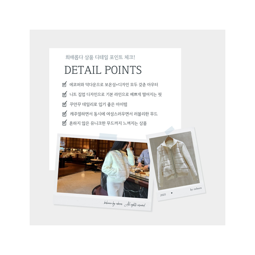 혼용률 : 페이크 밍크퍼100% 덕다운100%(안감:폴리100%)