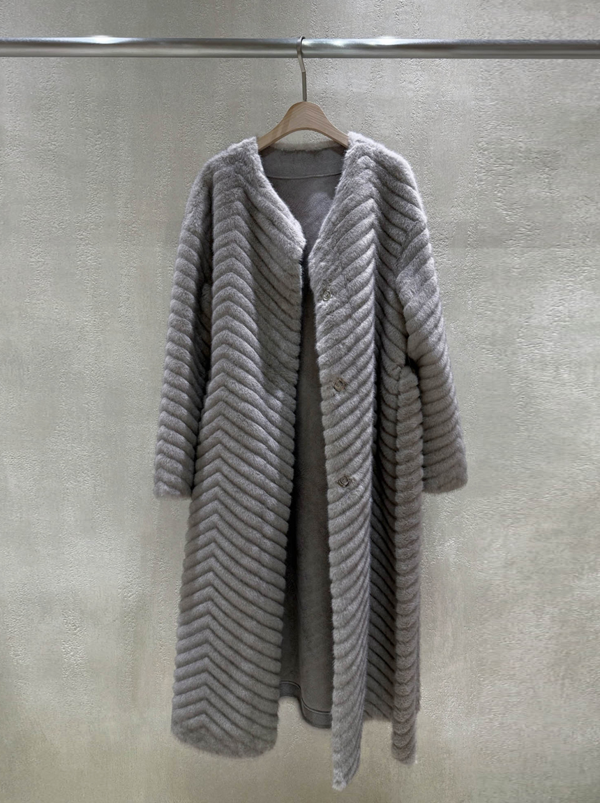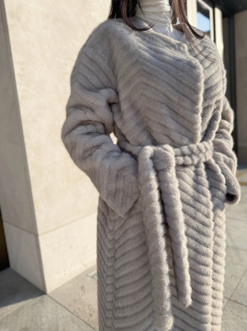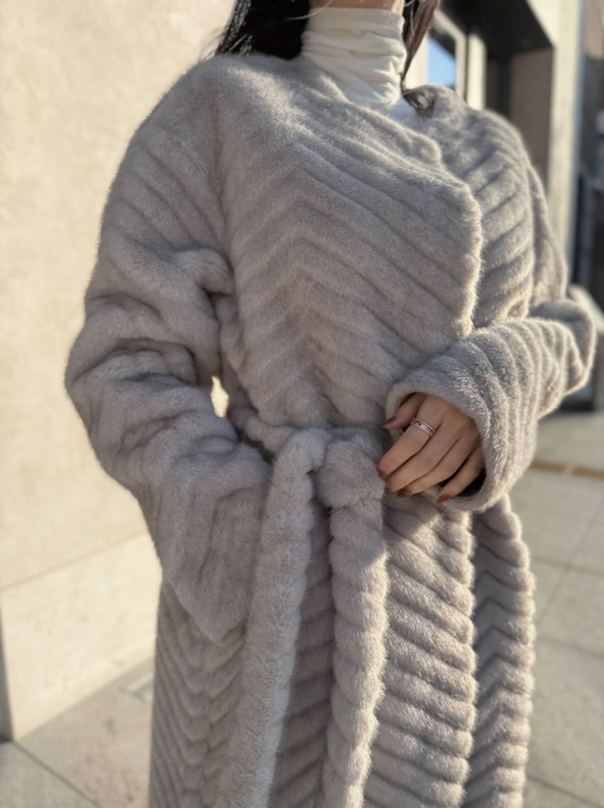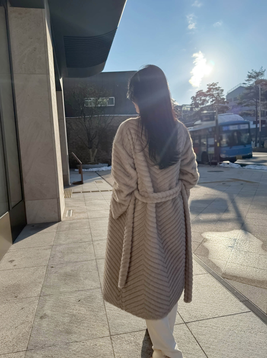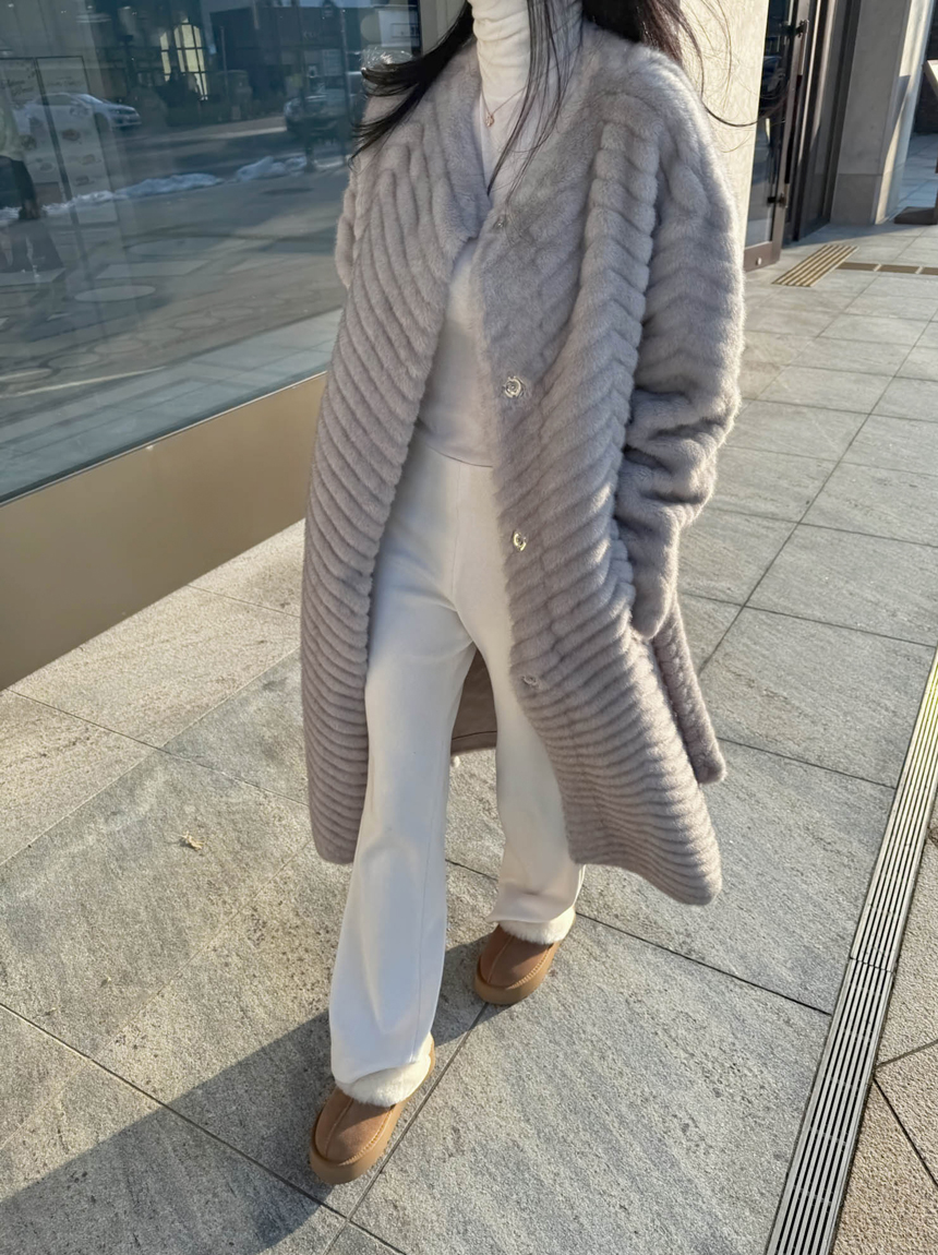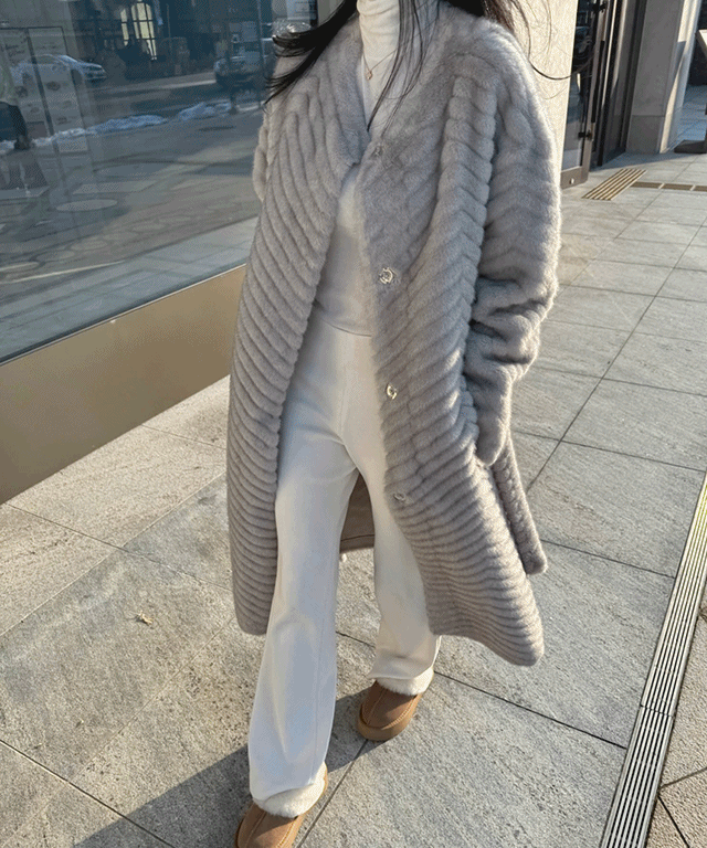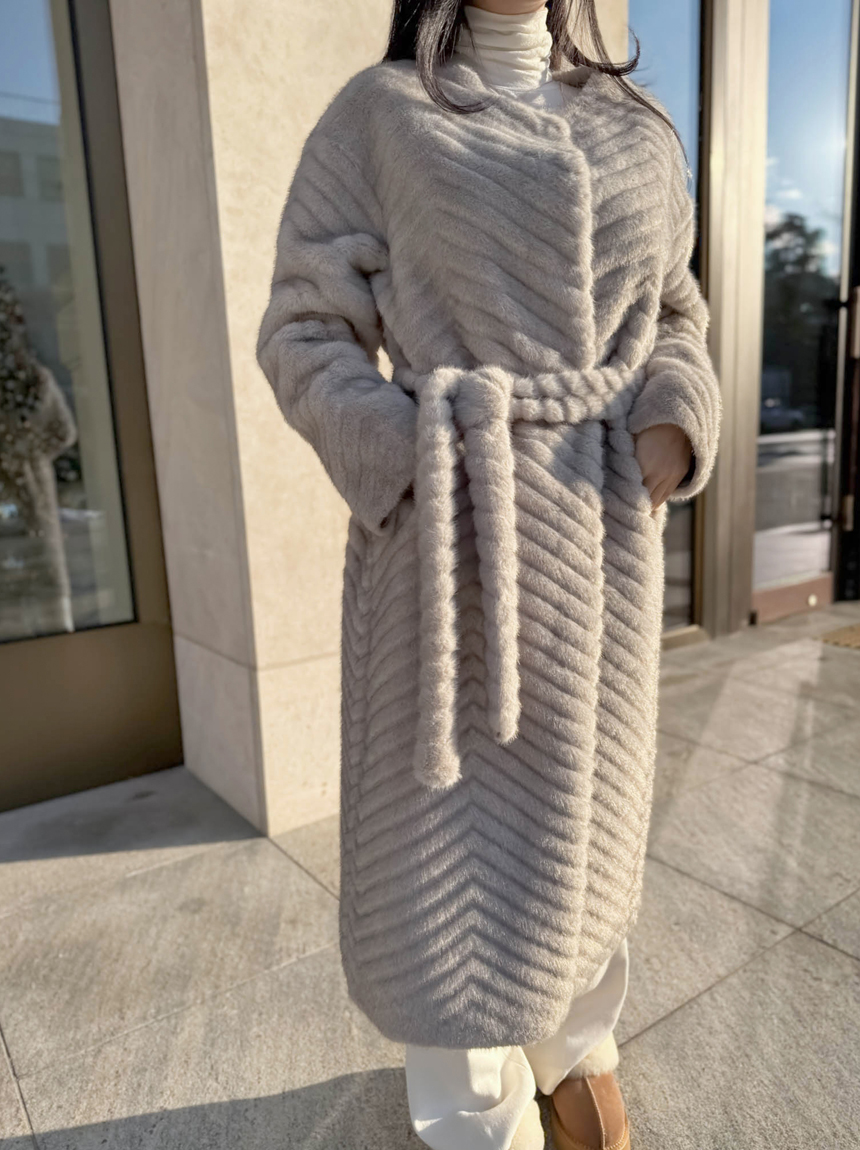 하이퀄리티 페이크 퍼 쉐브론 롱 코트 소개해드려요 :)