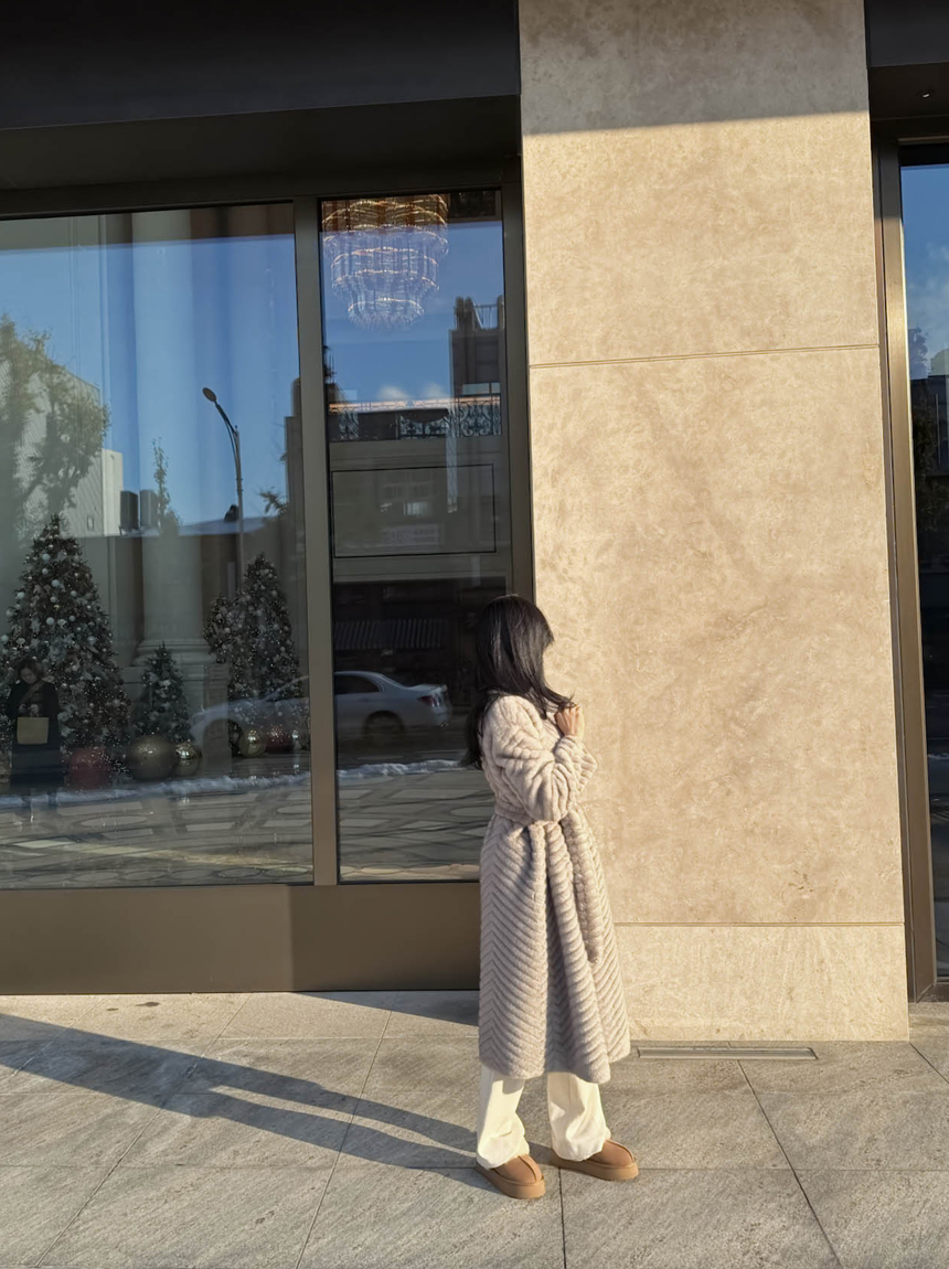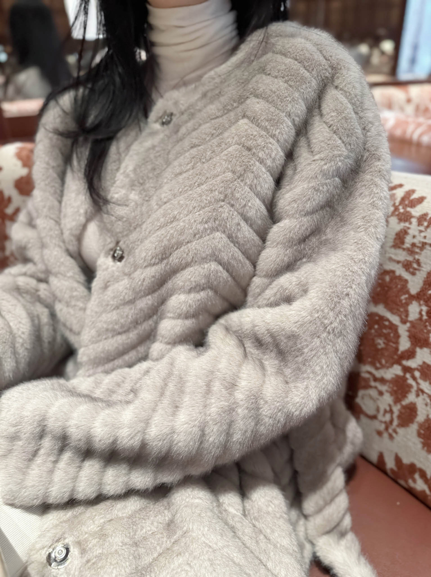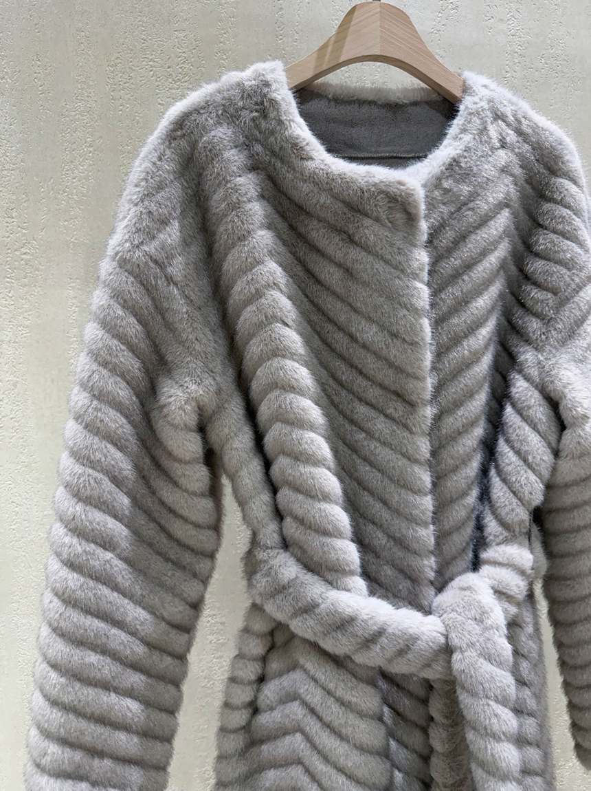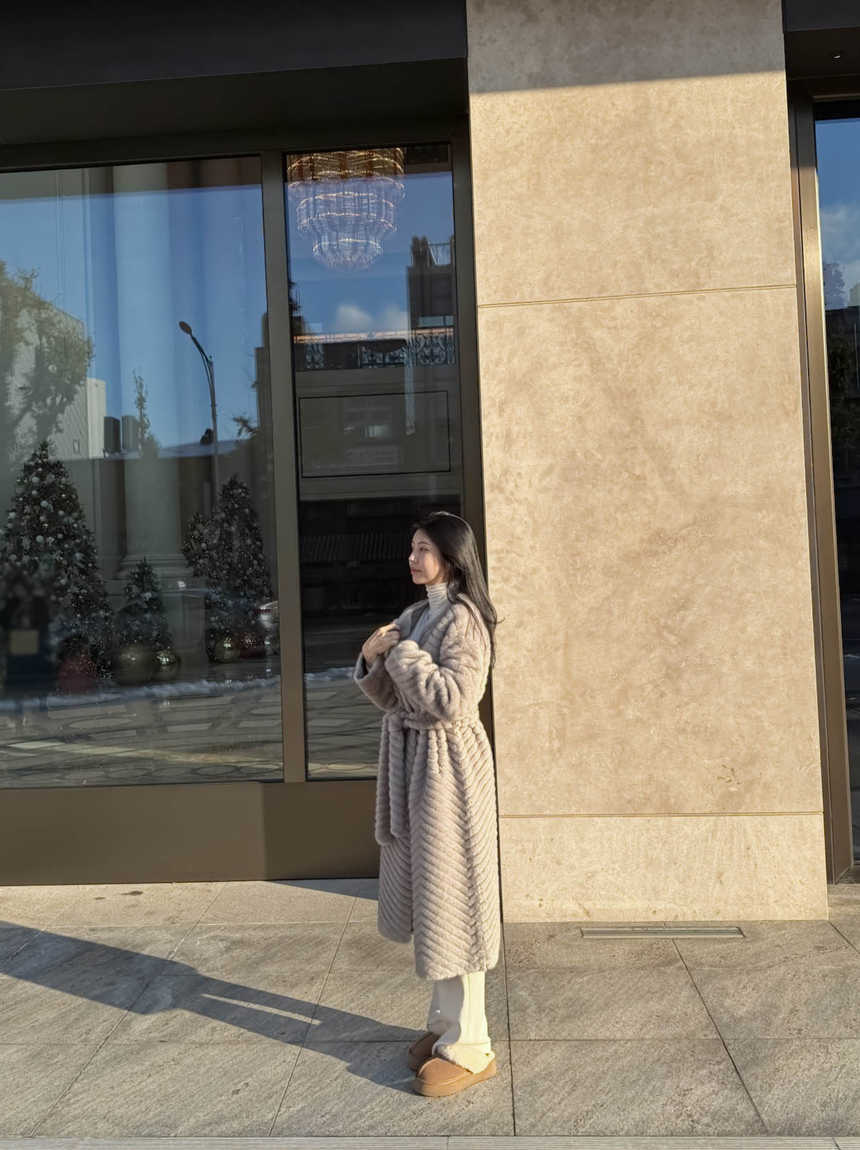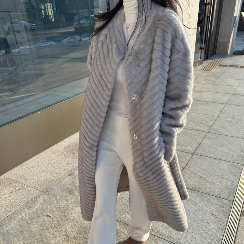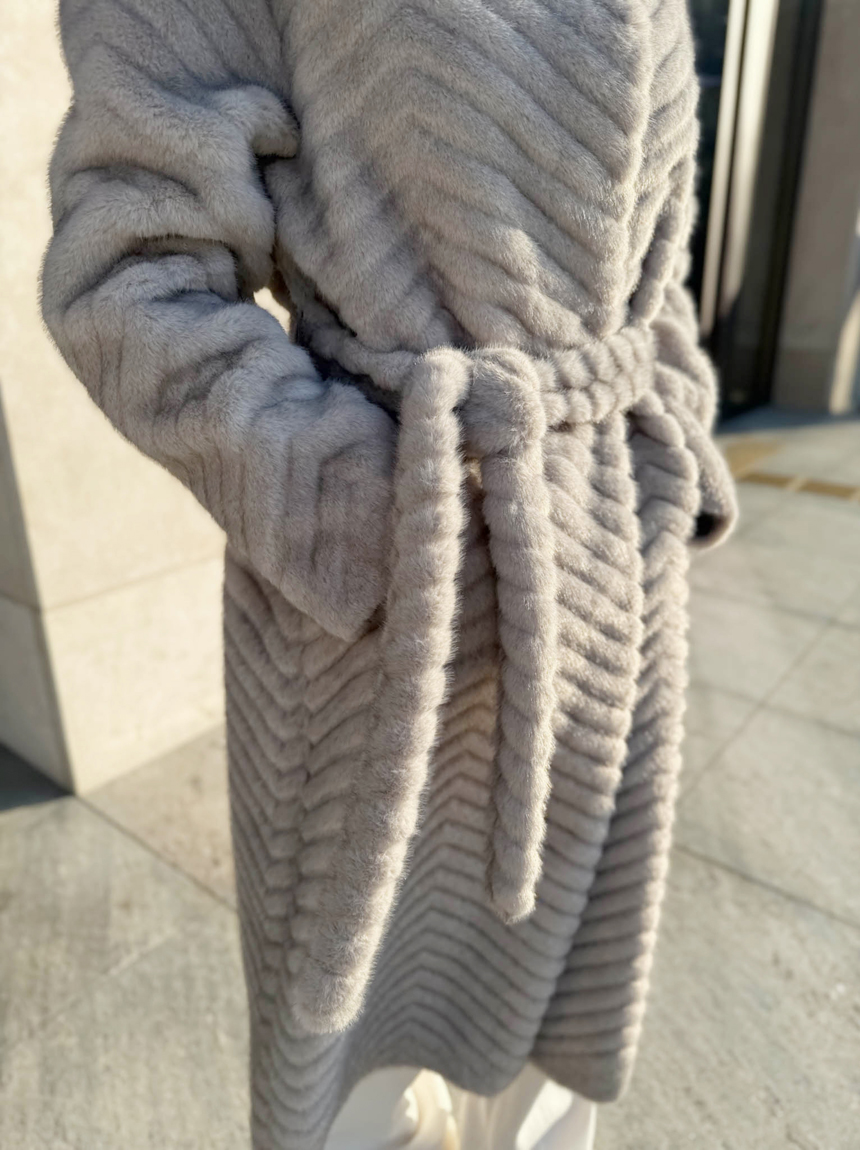 하이퀄리티 페이크 퍼 쉐브론 롱 코트 소개해드려요 :)