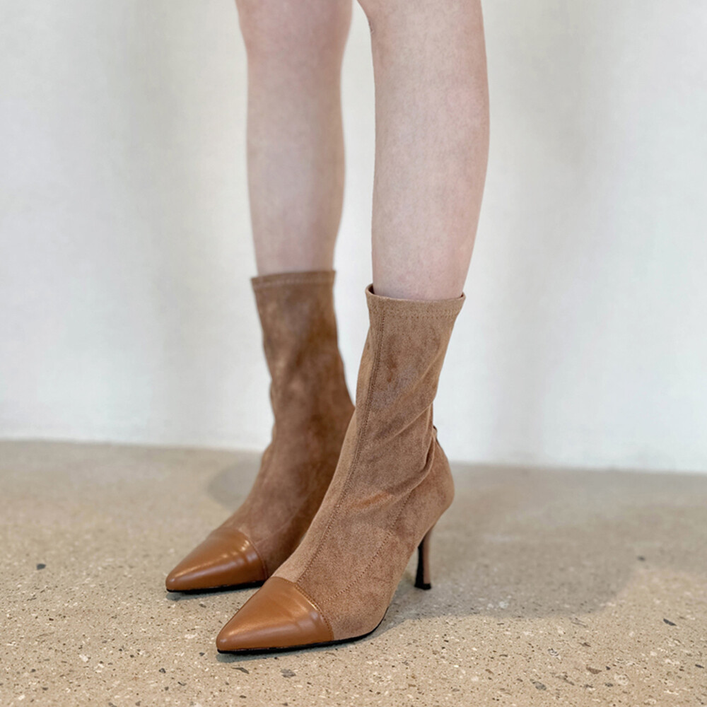 투톤 스웨이드 스판 앵클부츠