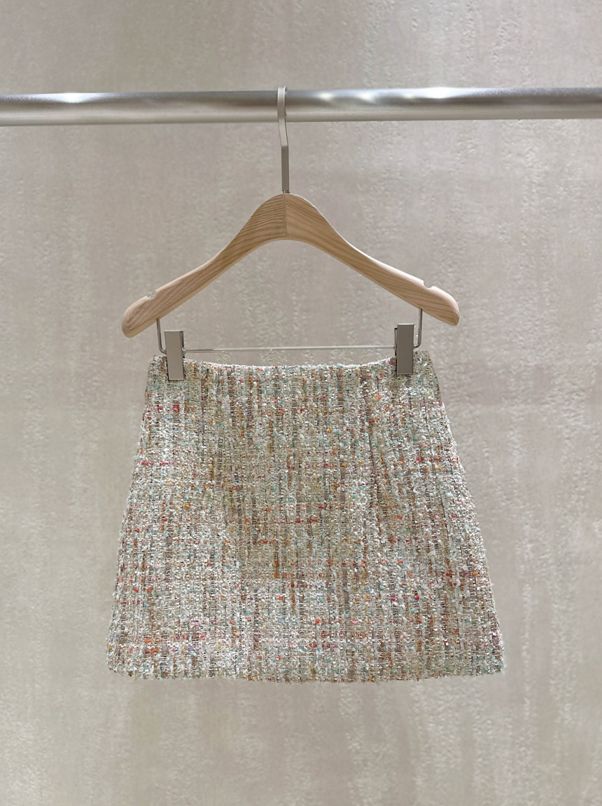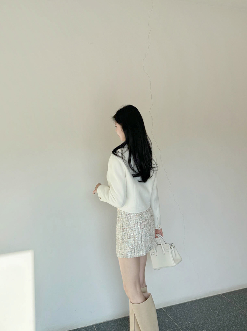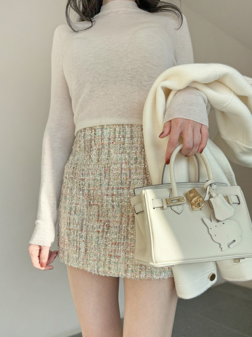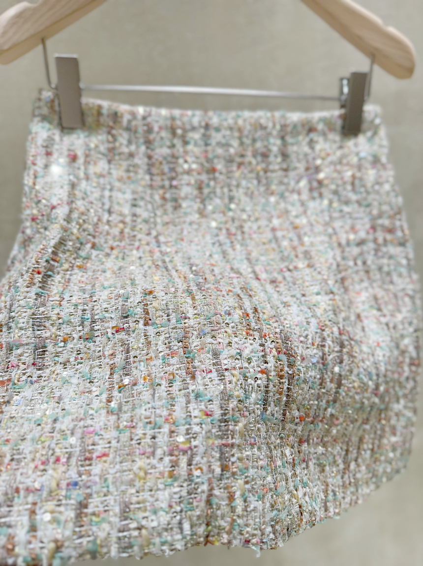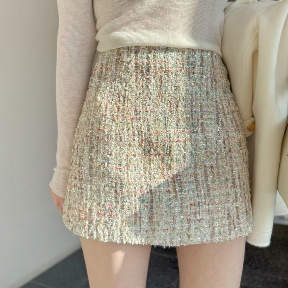 여성스럽고 고급스러운 무드의 트위드 미니 스커트예요