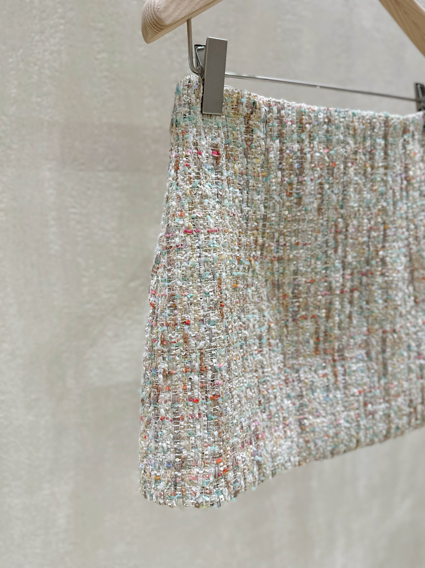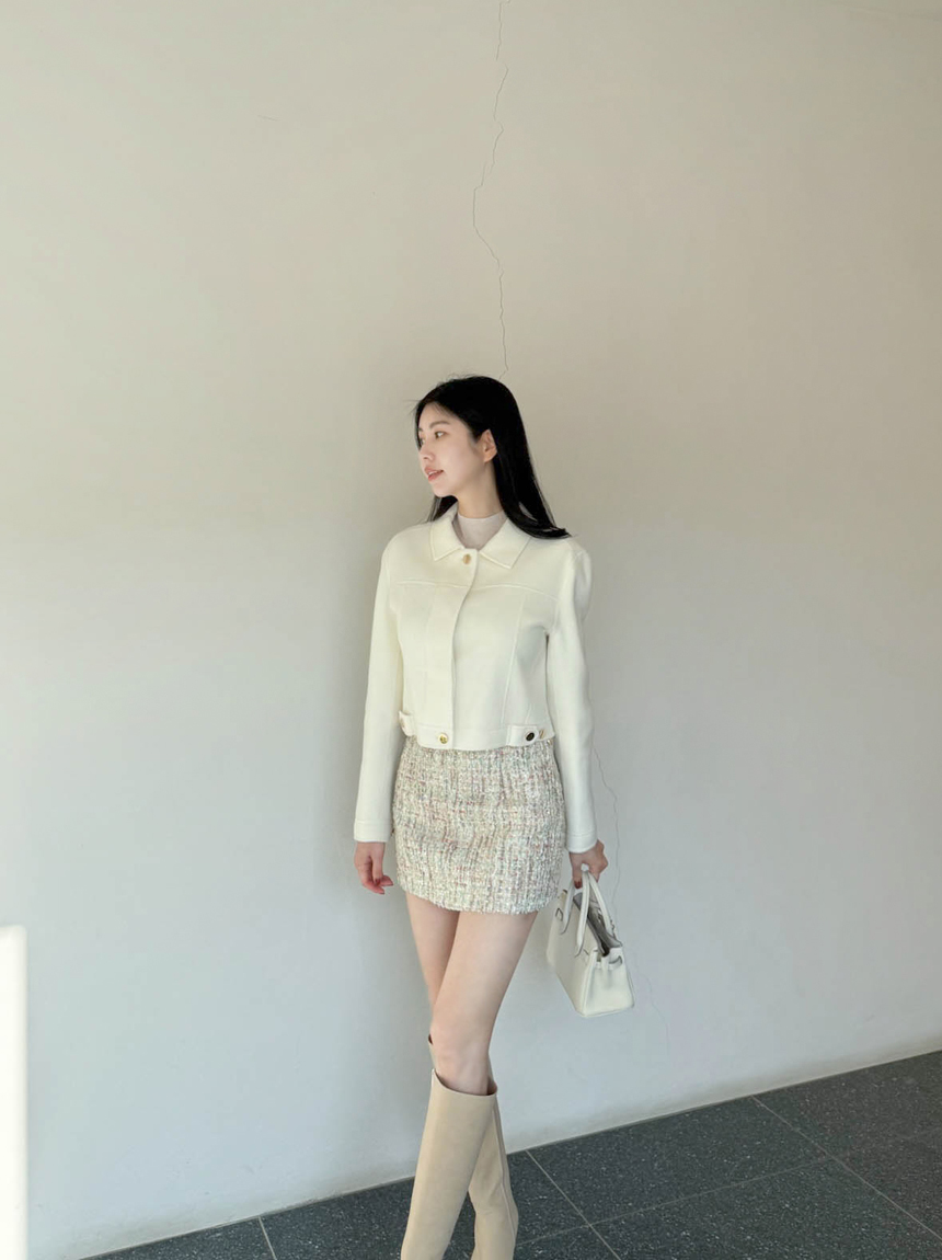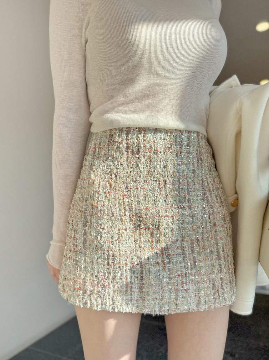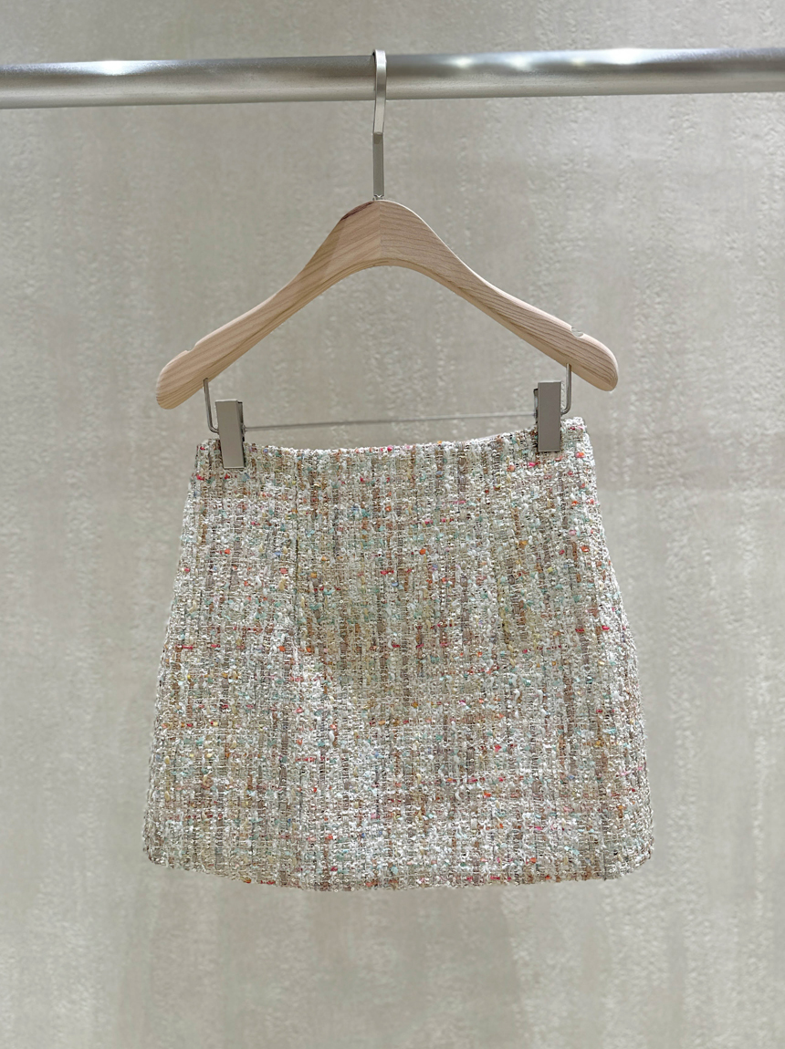 여성스럽고 고급스러운 무드의 트위드 미니 스커트예요