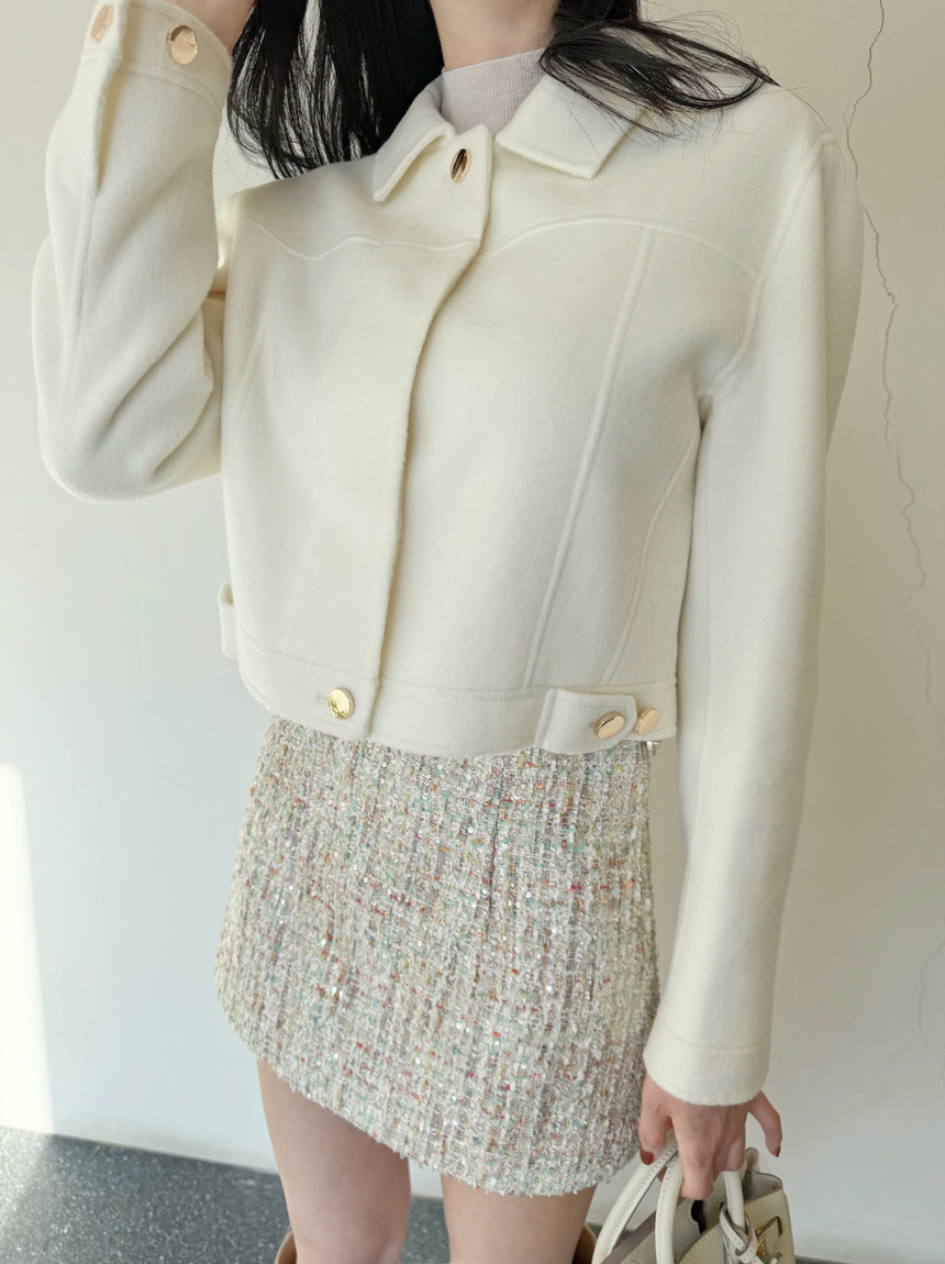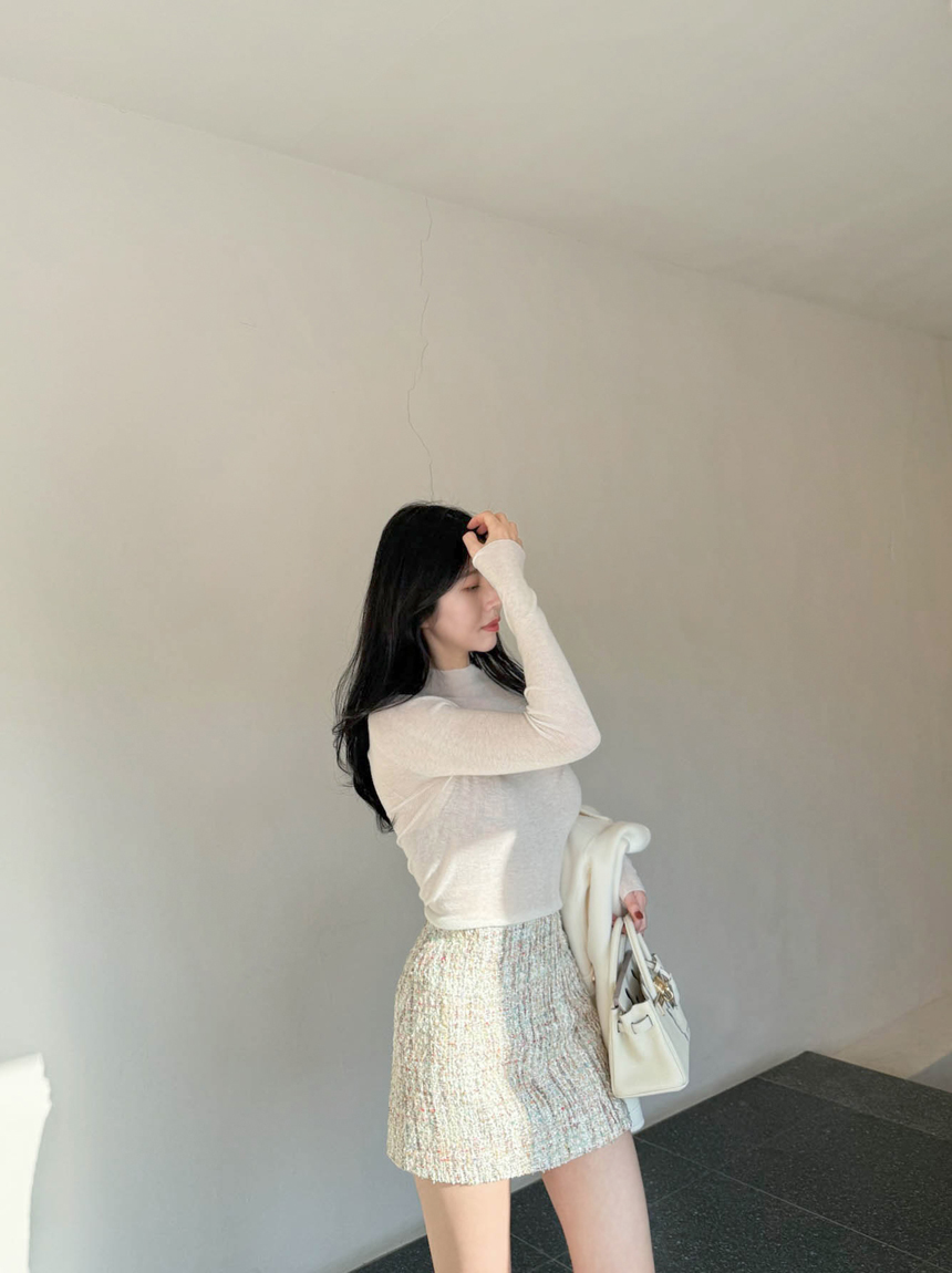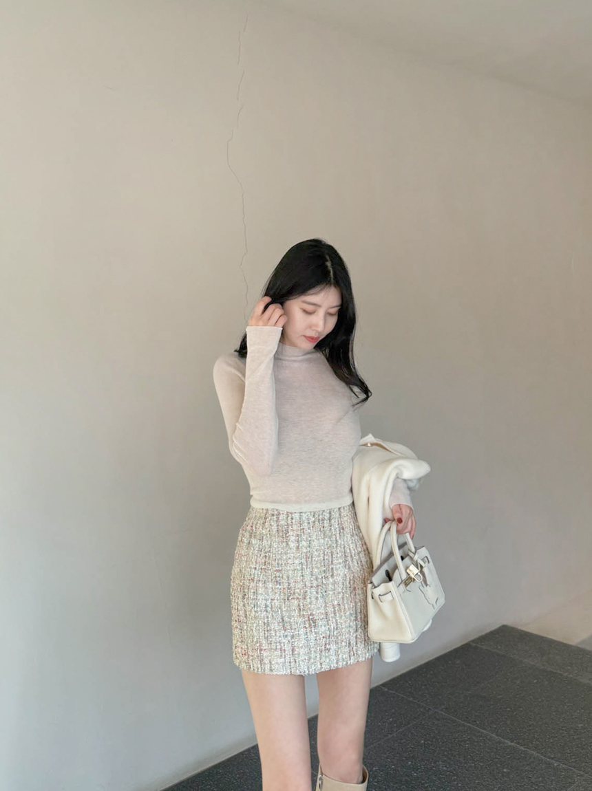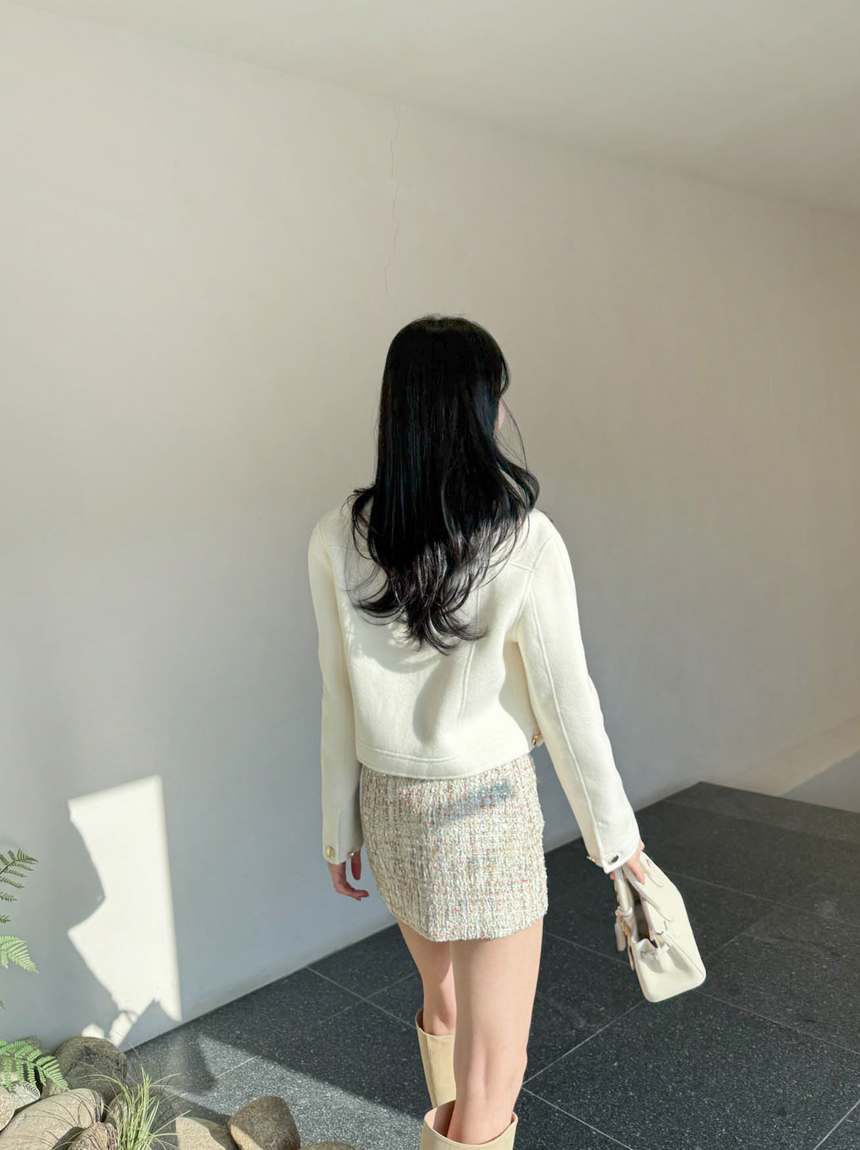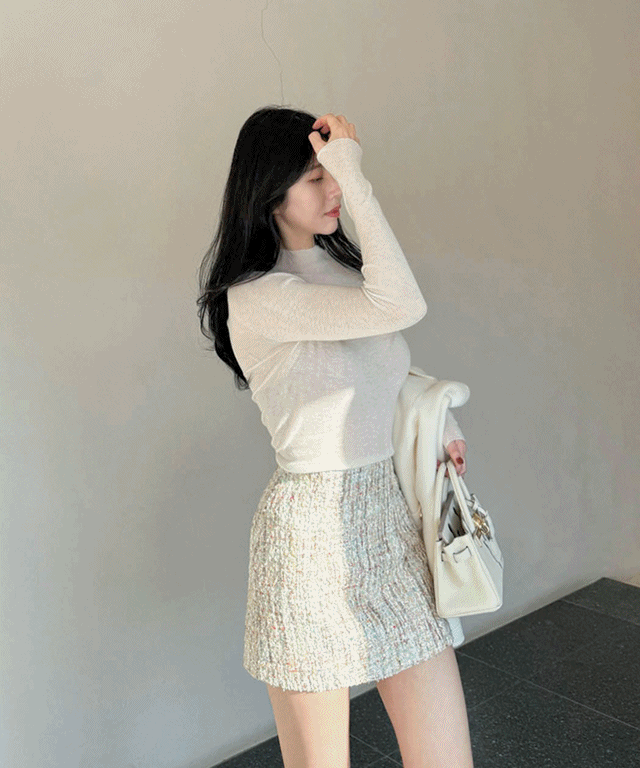 여성스럽고 고급스러운 무드의 트위드 미니 스커트예요