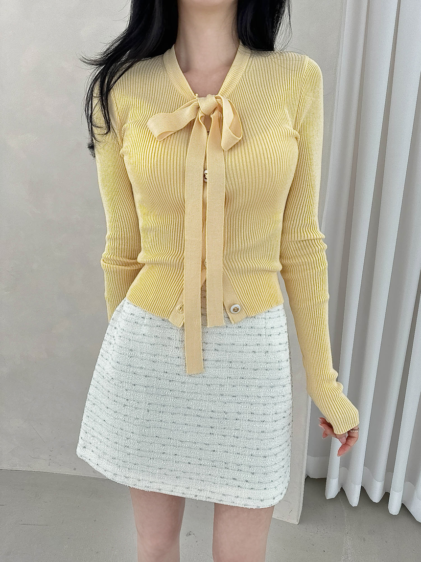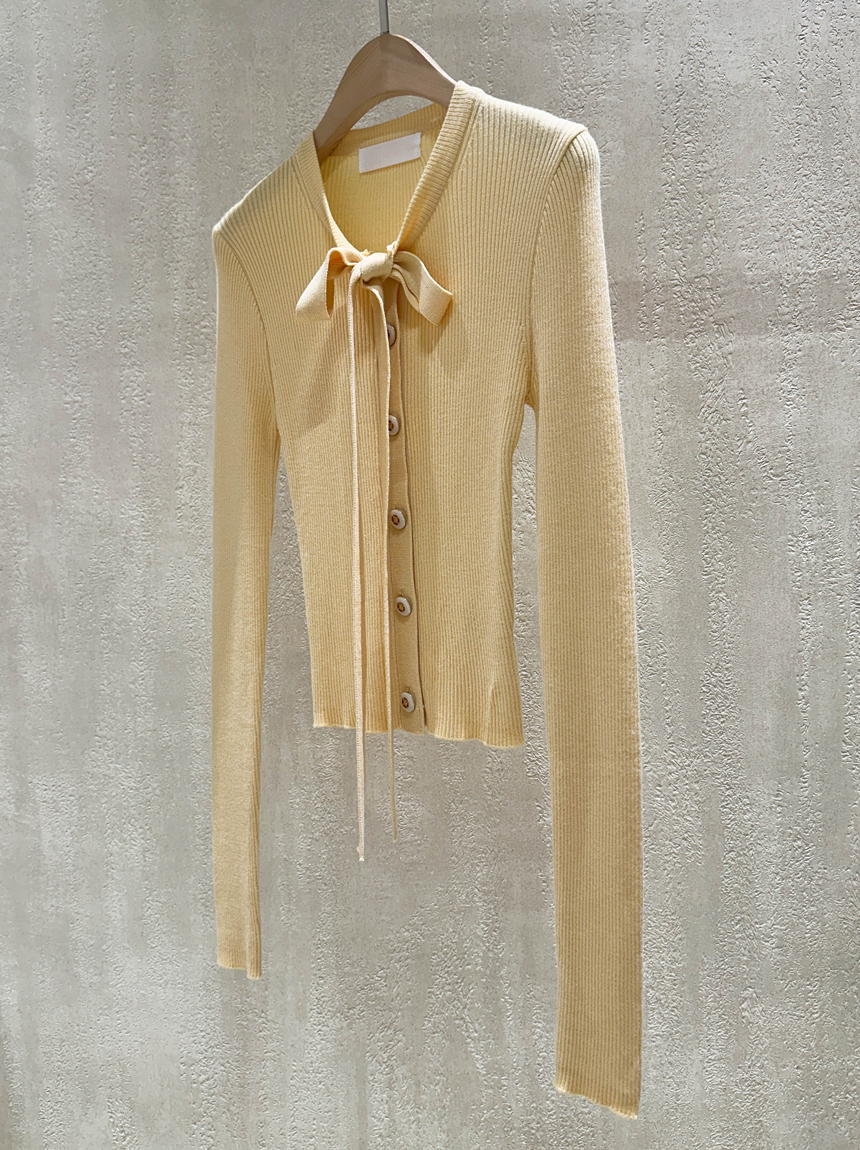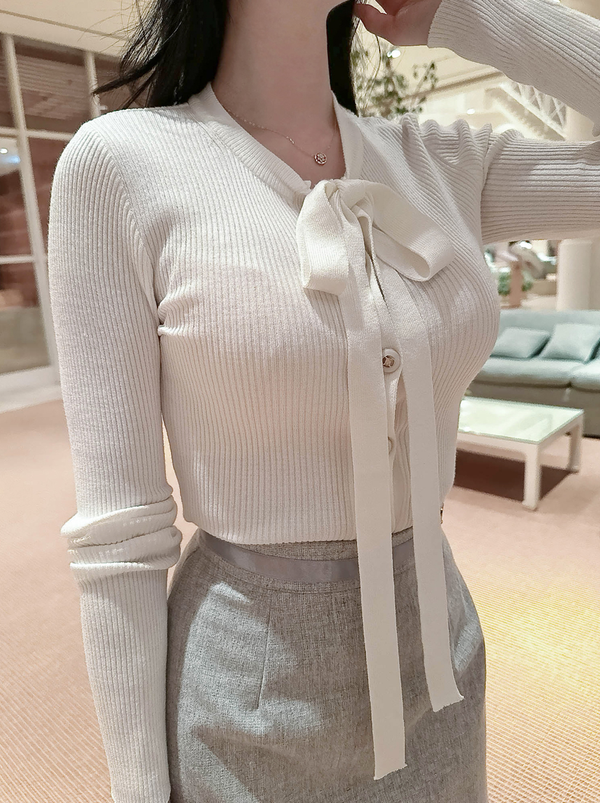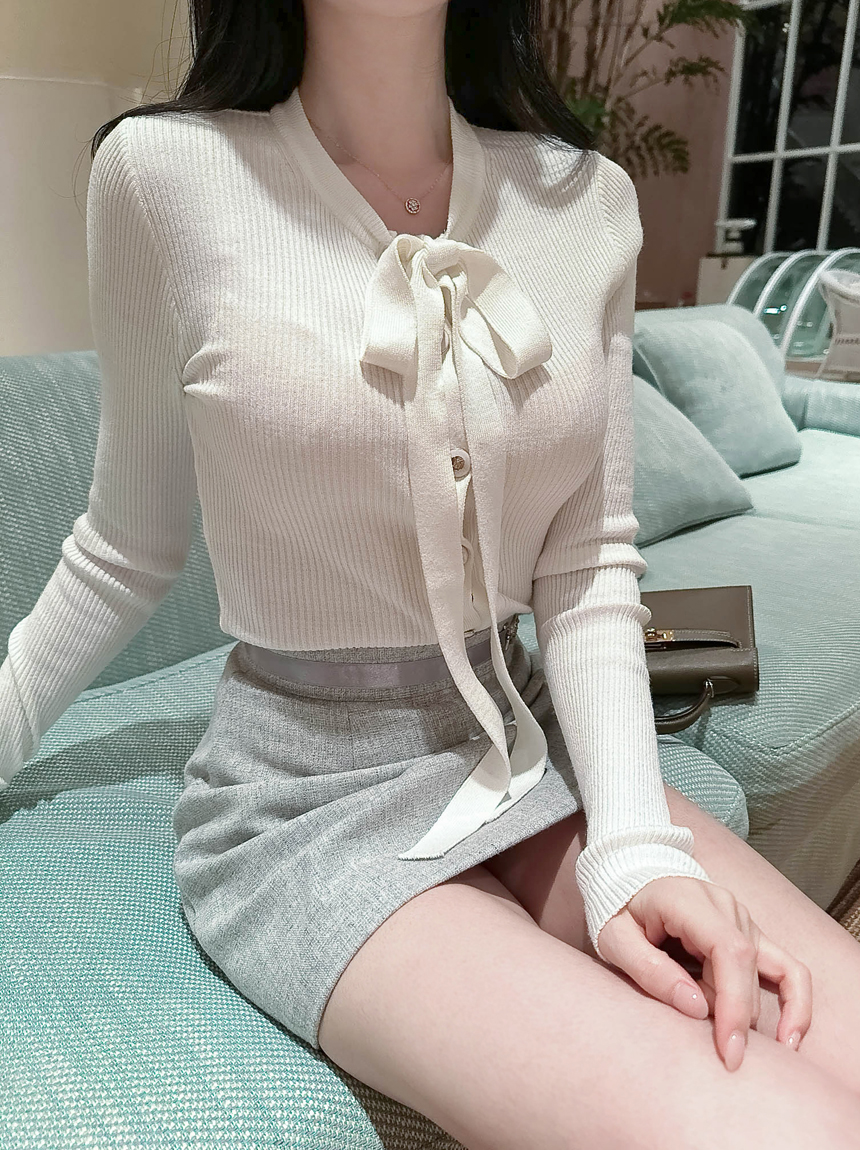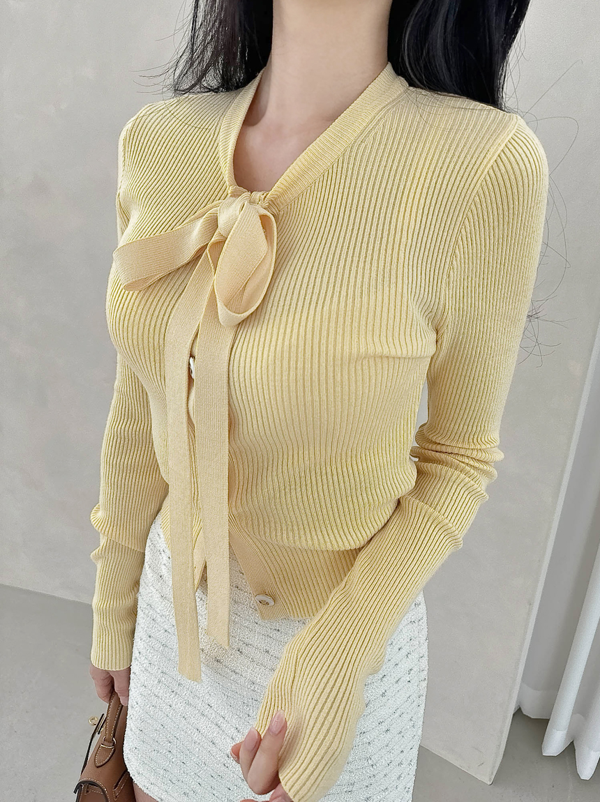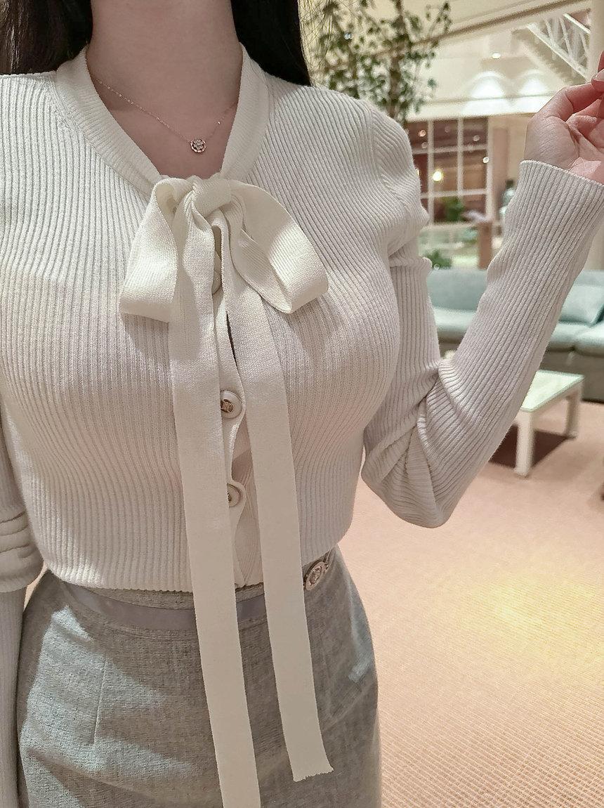 리본 타이 슬림핏 니트 가디건