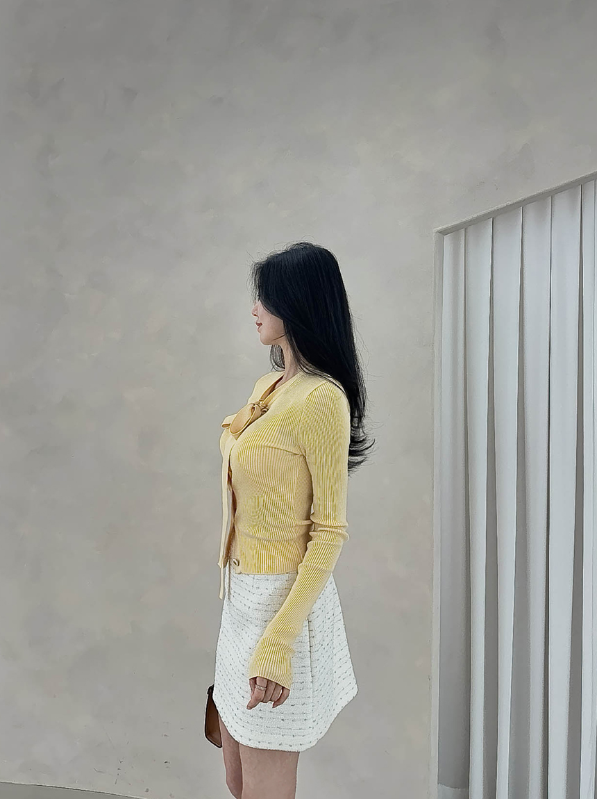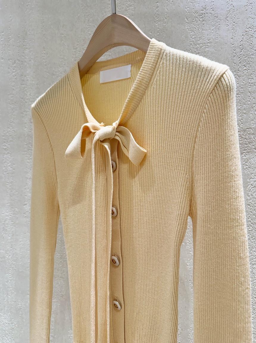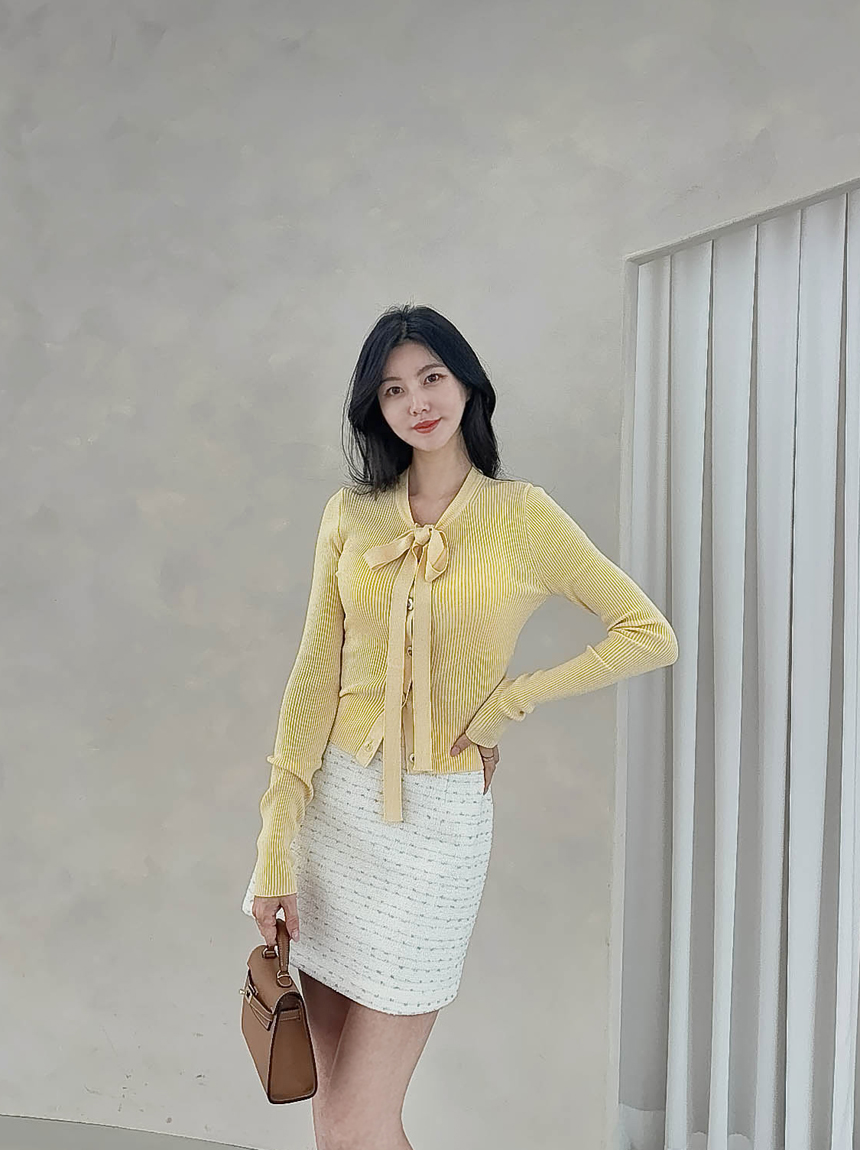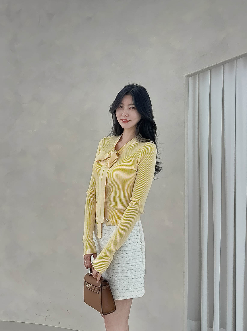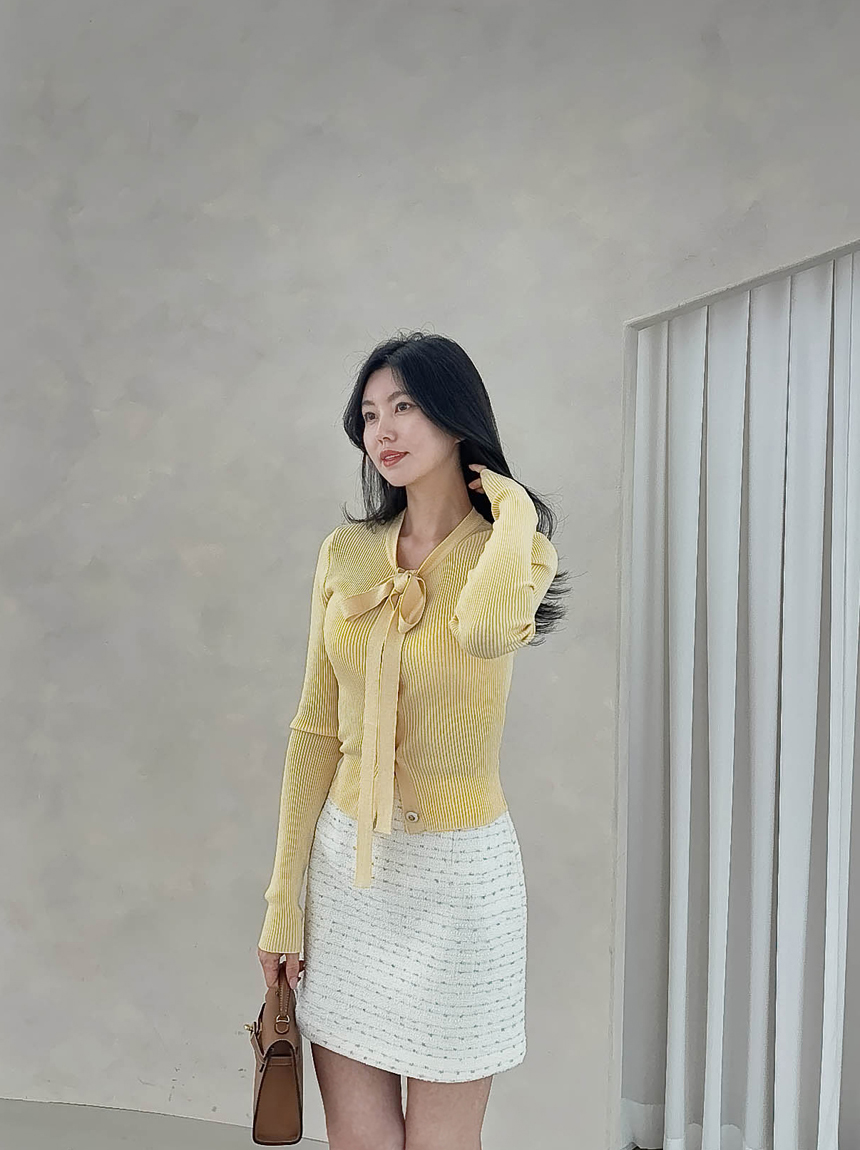 리본 타이 슬림핏 니트 가디건