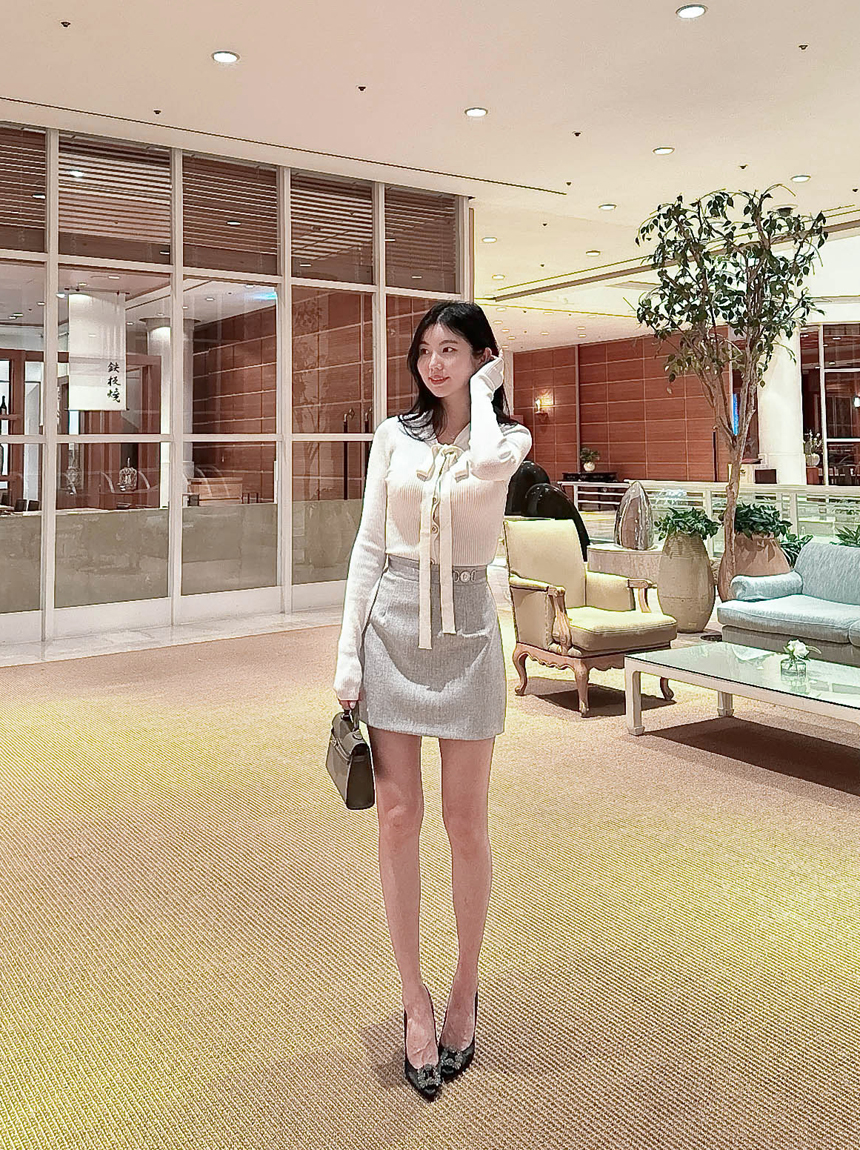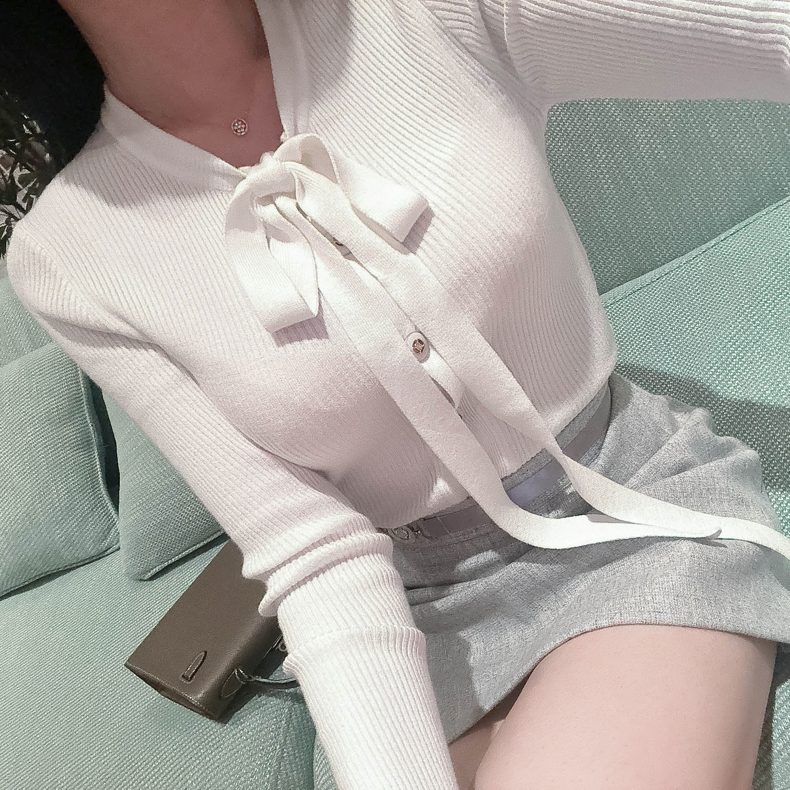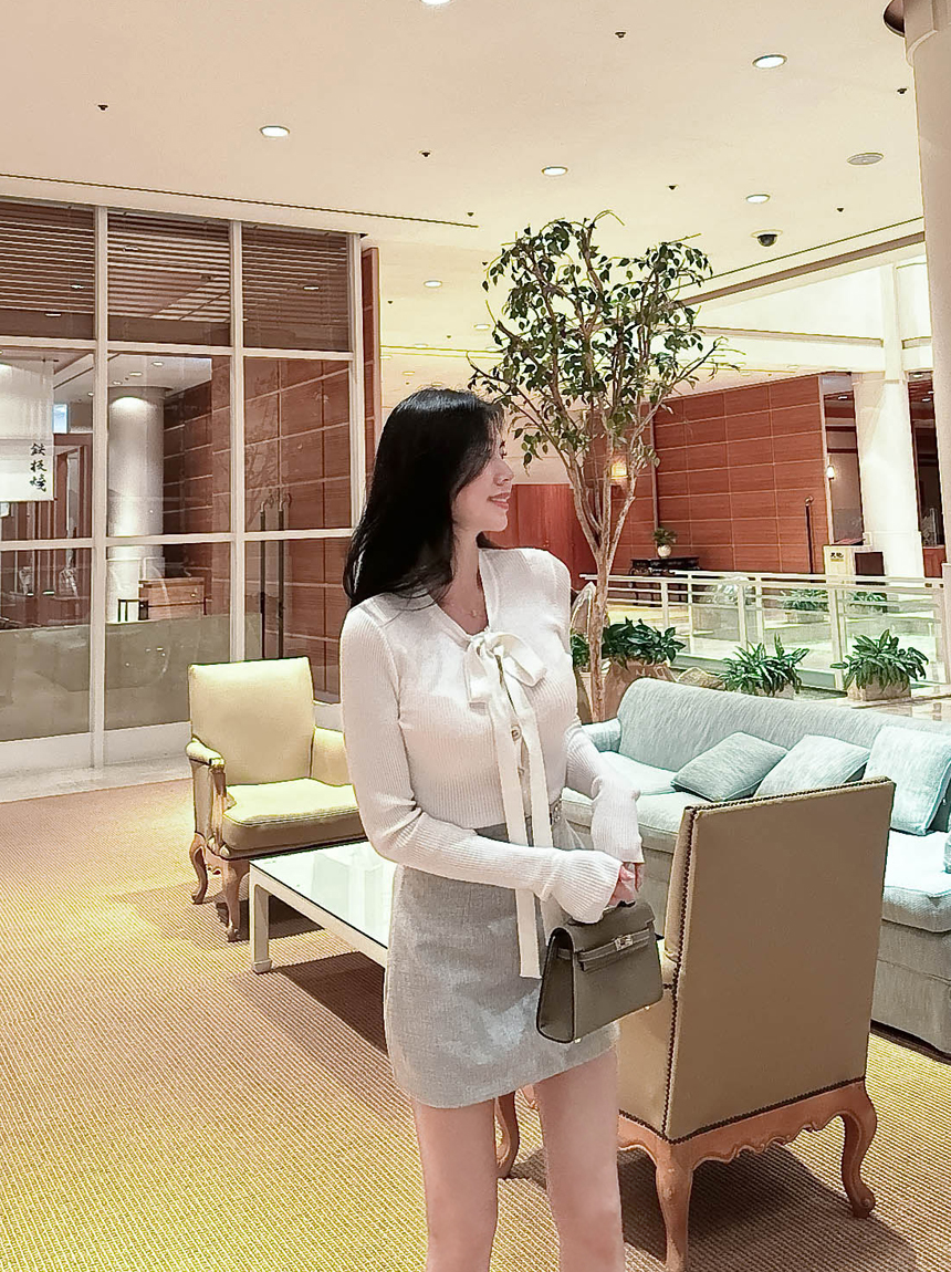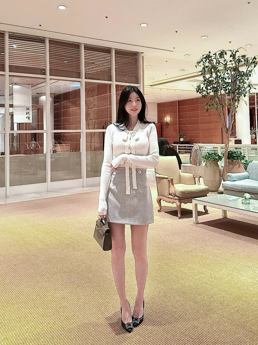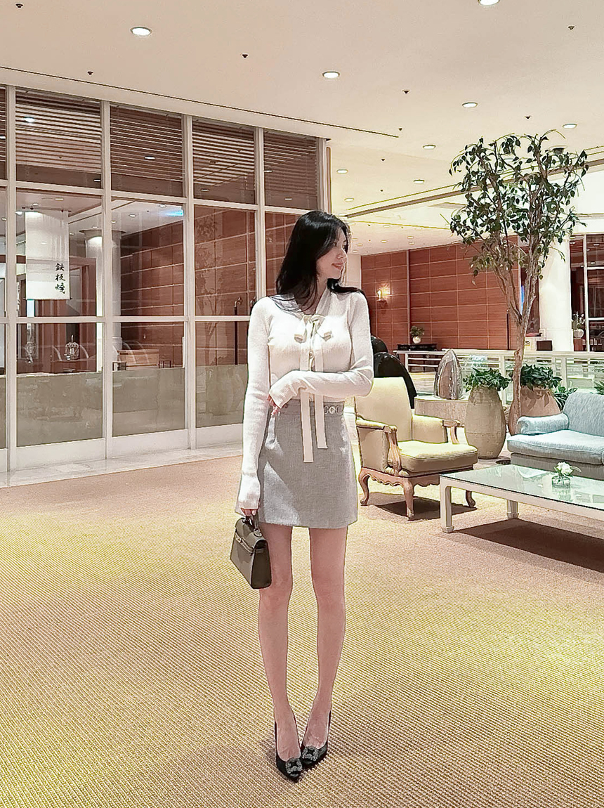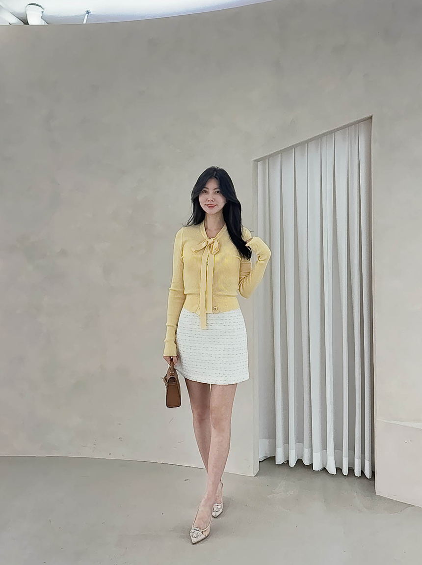 리본 타이 슬림핏 니트 가디건