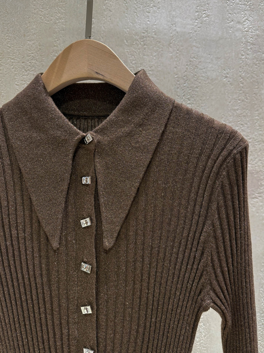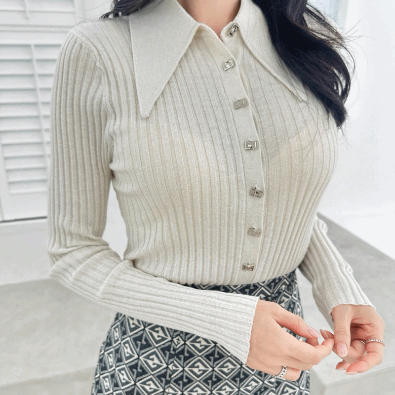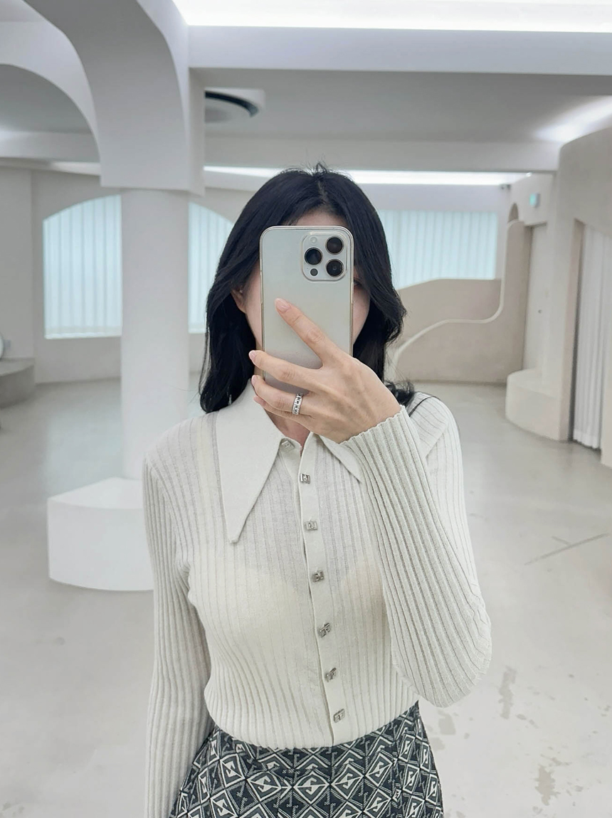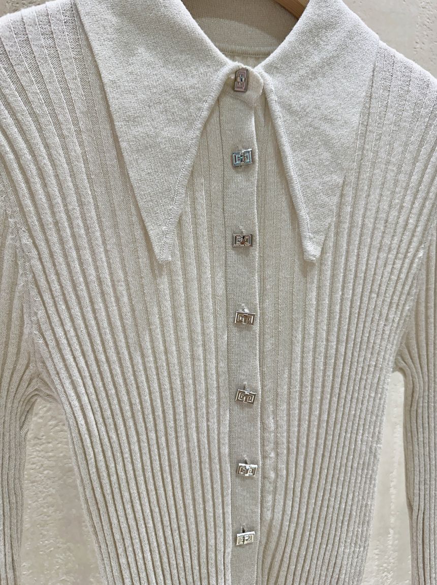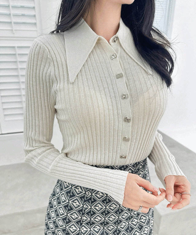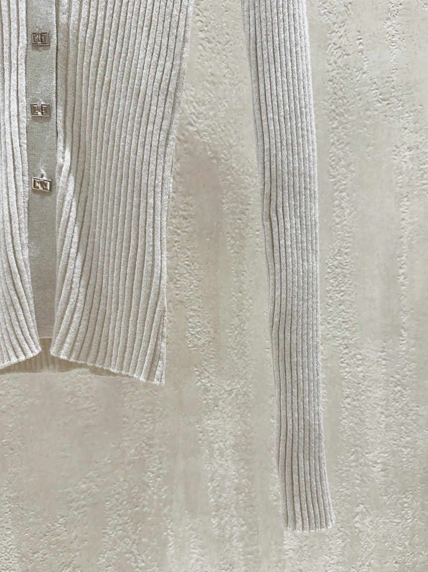 가운데 실버 버튼 장식이 있어 마치 가디건을