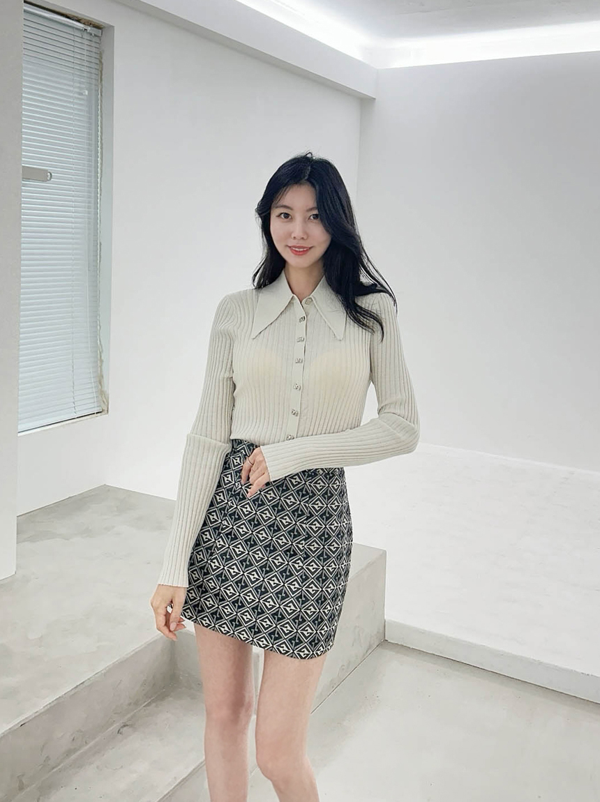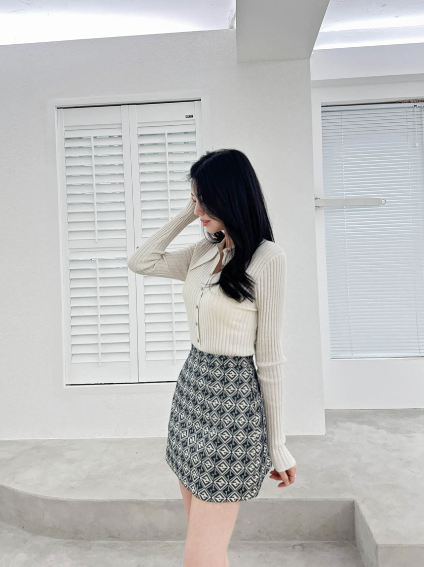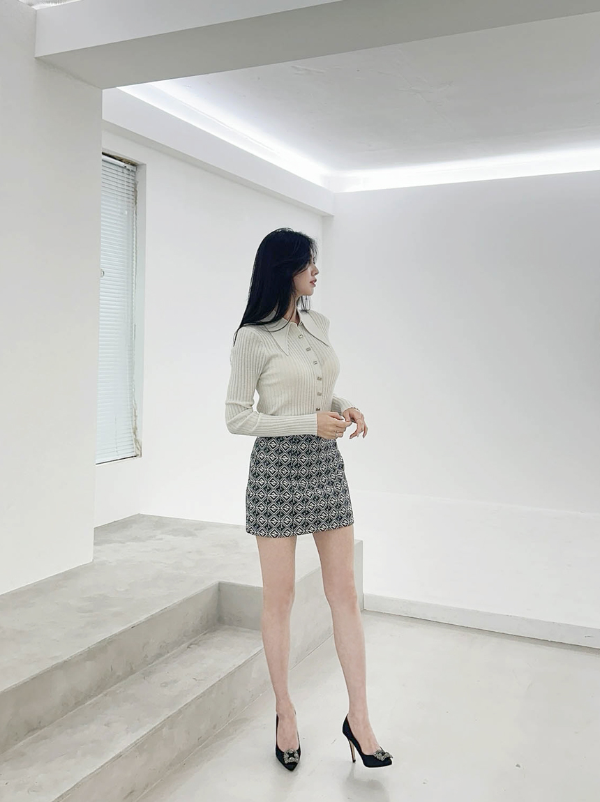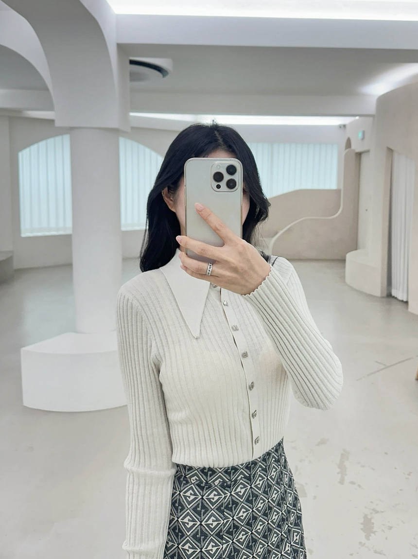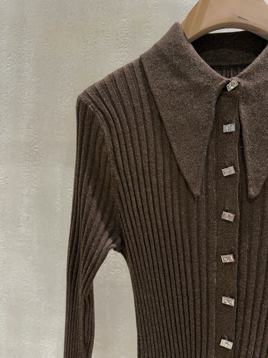 가운데 실버 버튼 장식이 있어 마치 가디건을