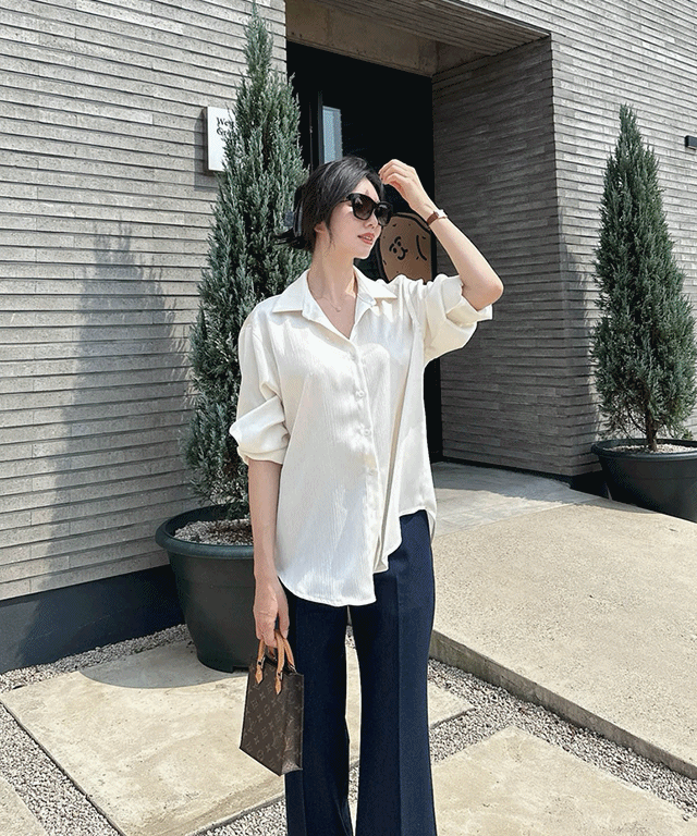 루즈핏 플리츠 주름 카라 셔츠블라우스 소개 해드려요 :)